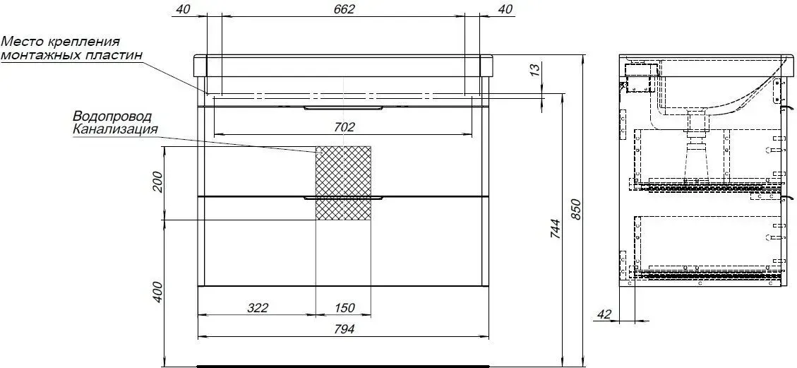 С двумя раковинами | Нет |
