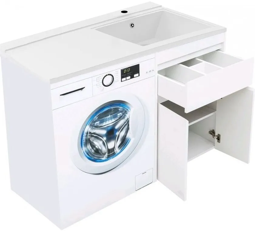 Тумба с раковиной Aquanet Токио 120 напольная белая глянцевая с 1-м ящиком и 2-мя дверцами правая