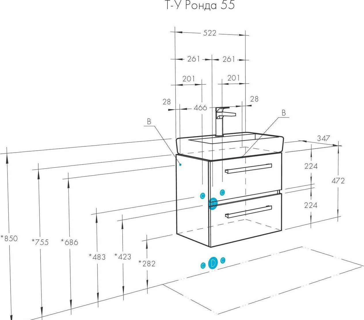 Тумба с раковиной Акватон Ронда Pro 55 подвесная