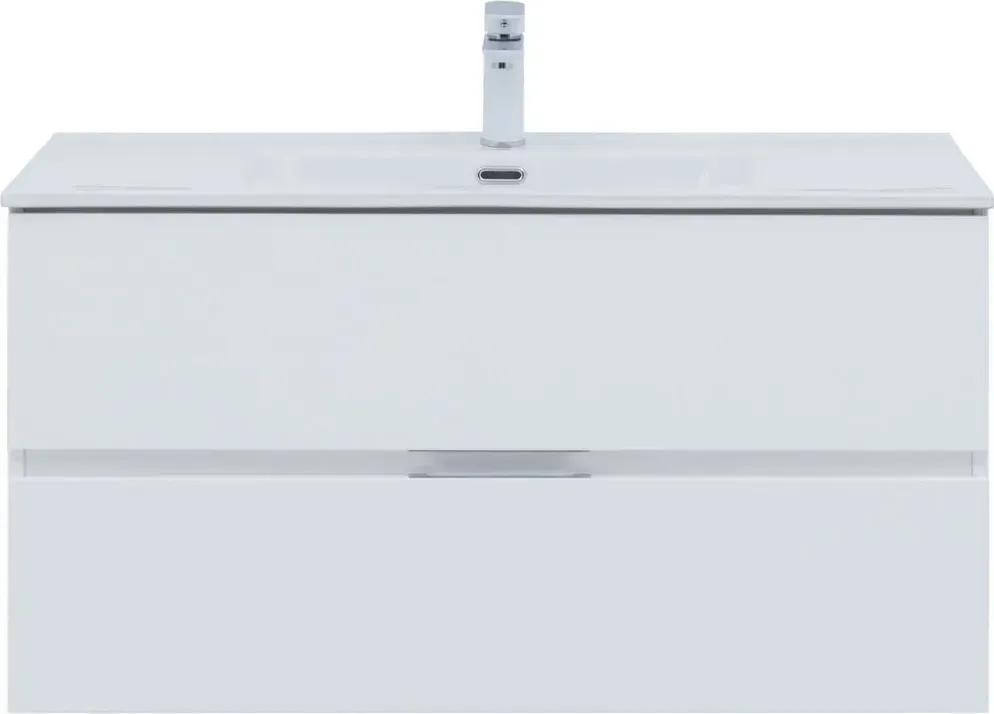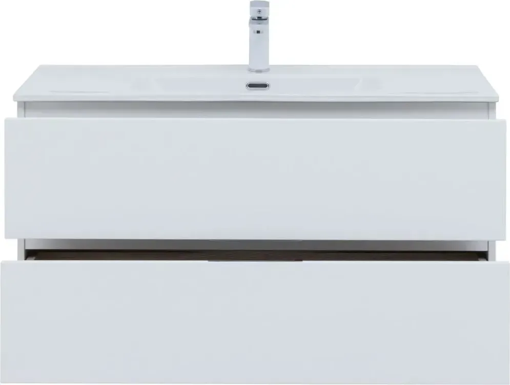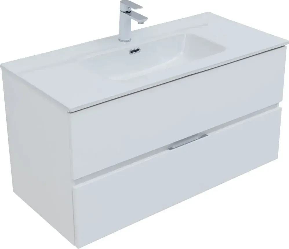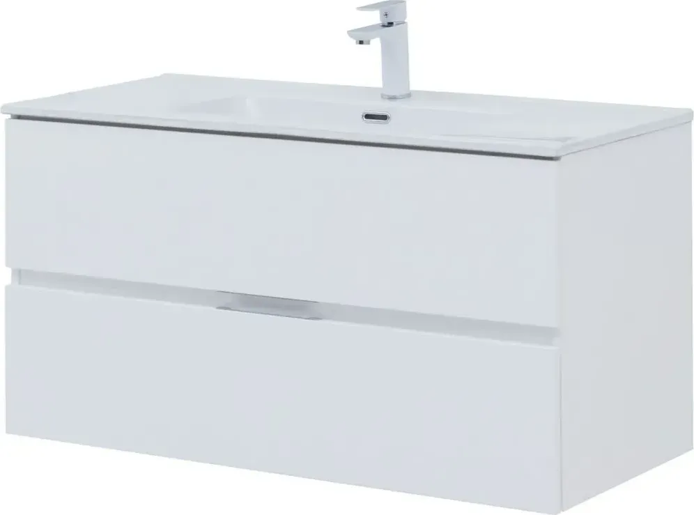 Тумба с раковиной Aquanet Алвита New 100 подвесная белая матовая с 2-мя ящиками