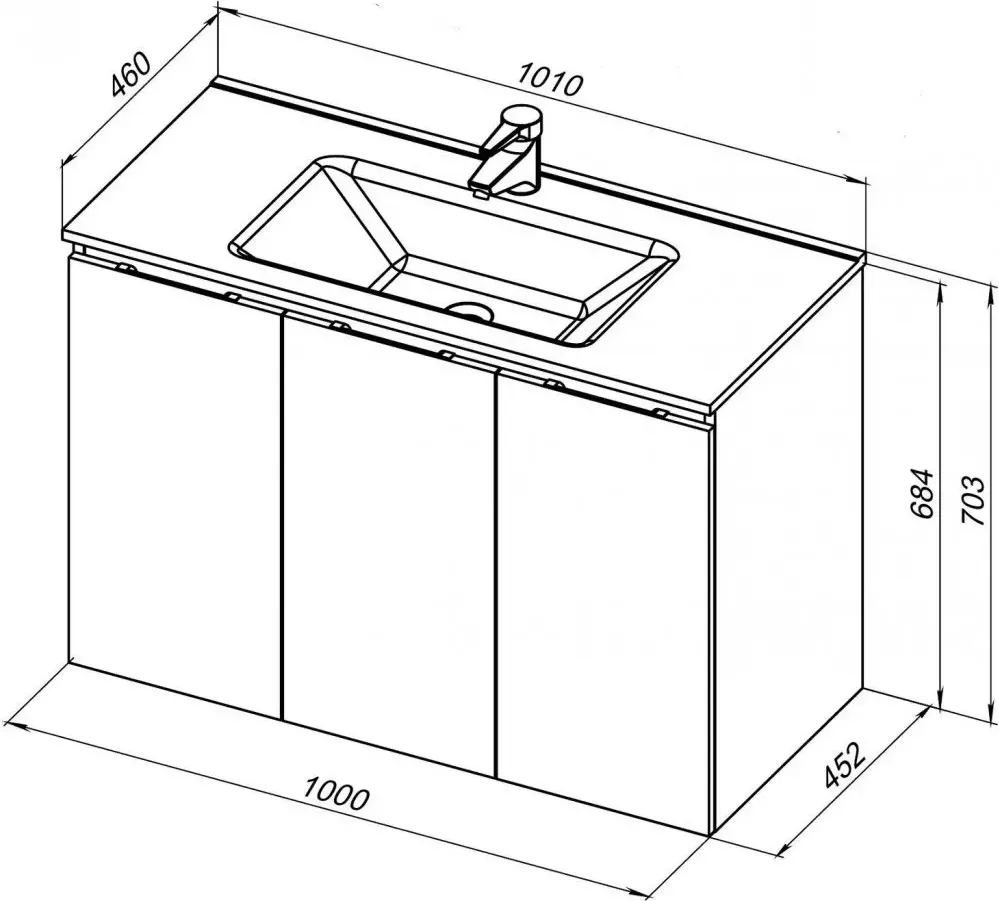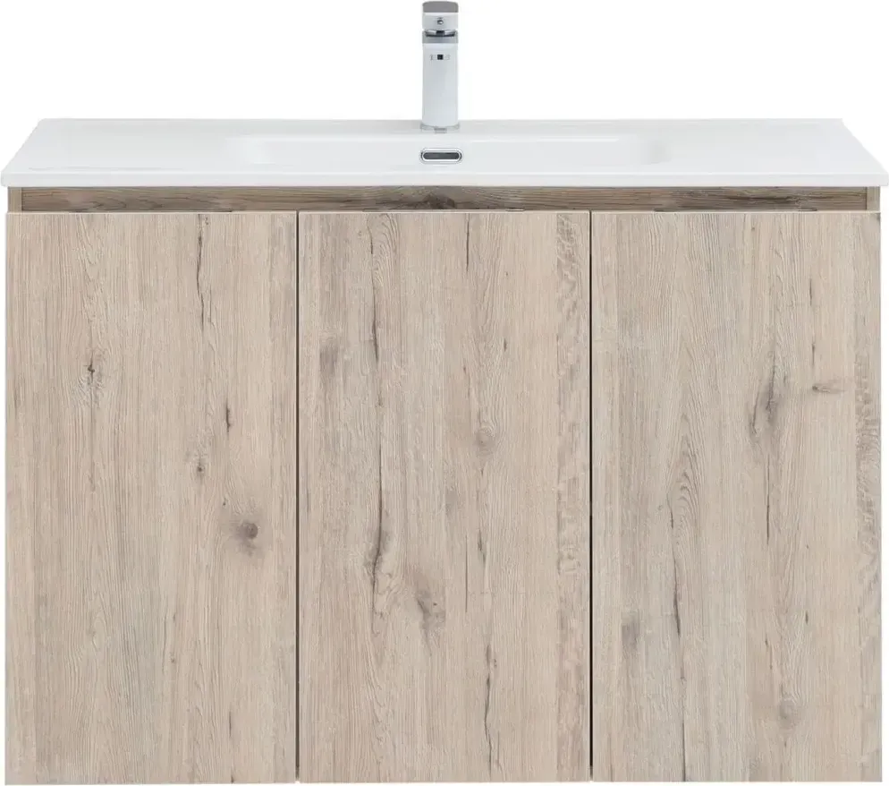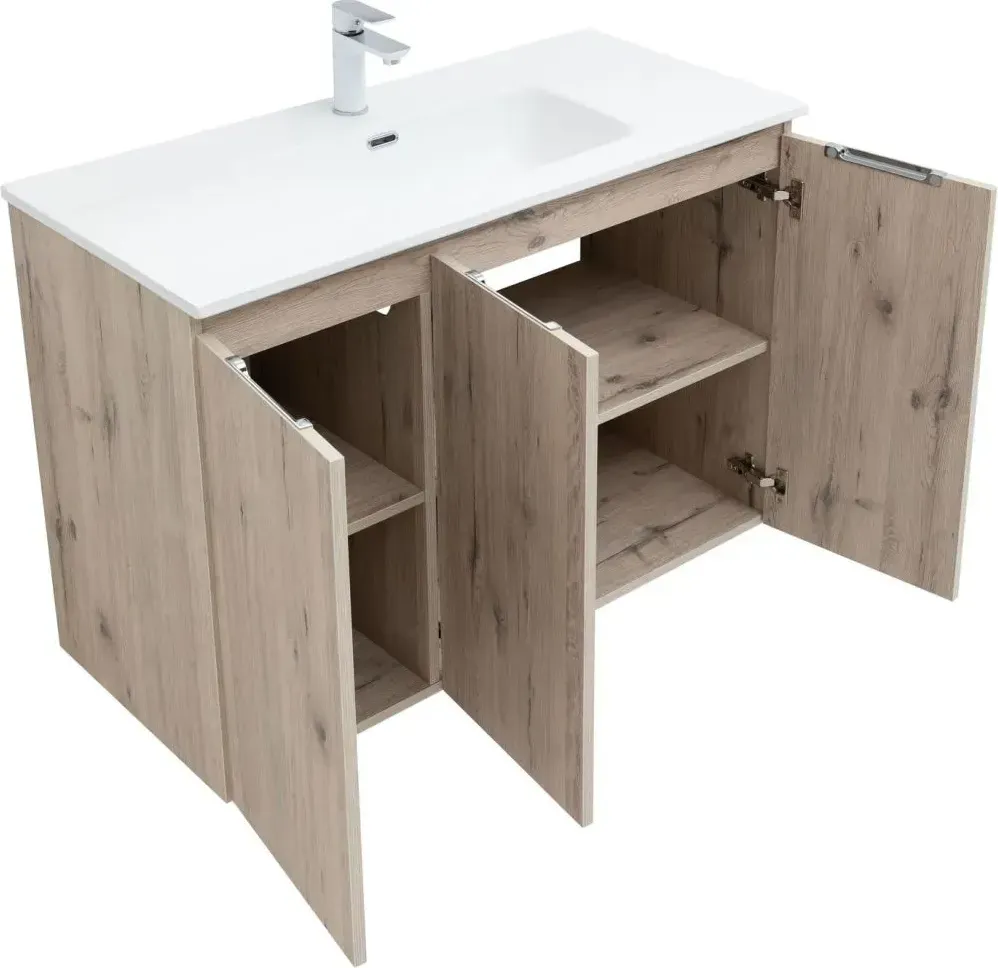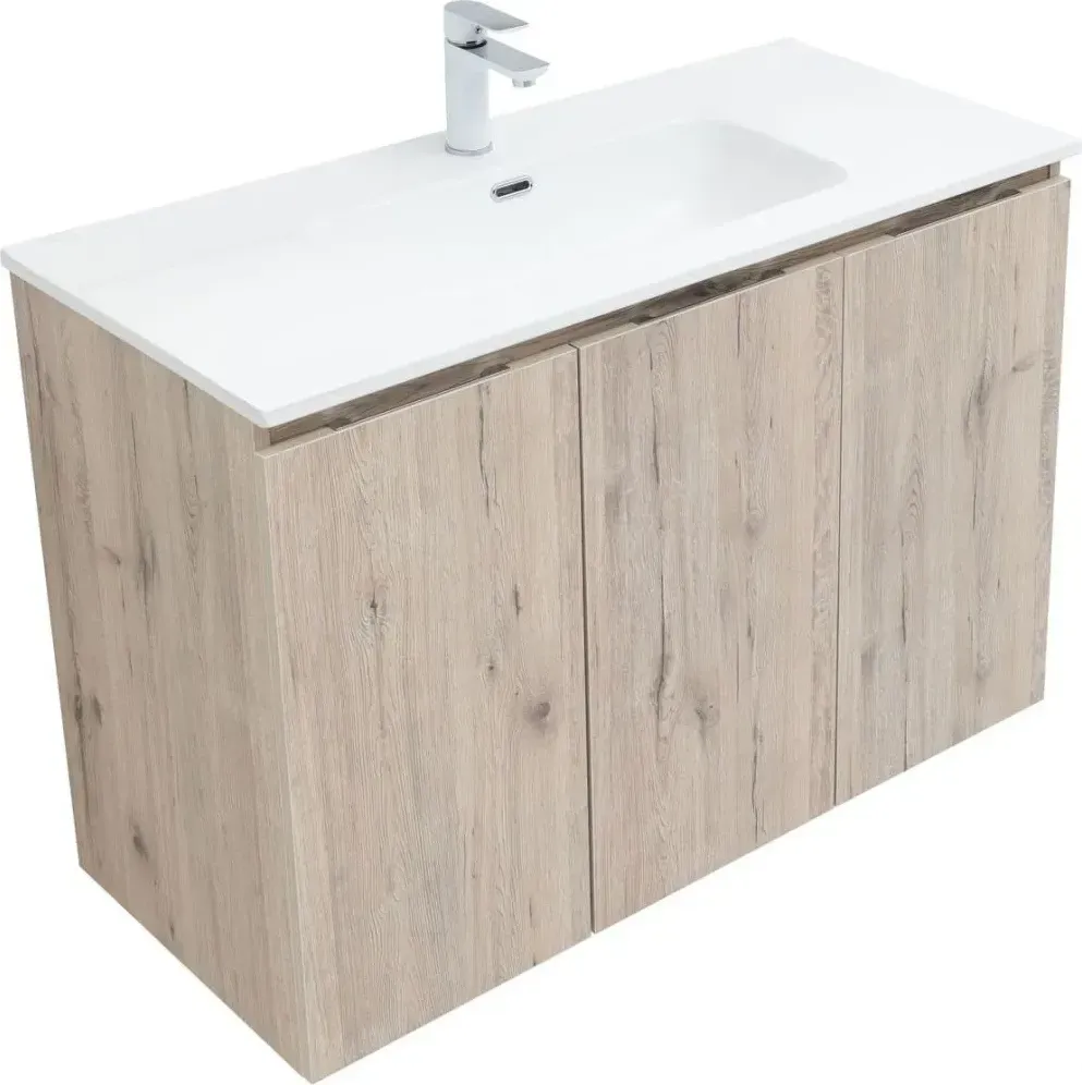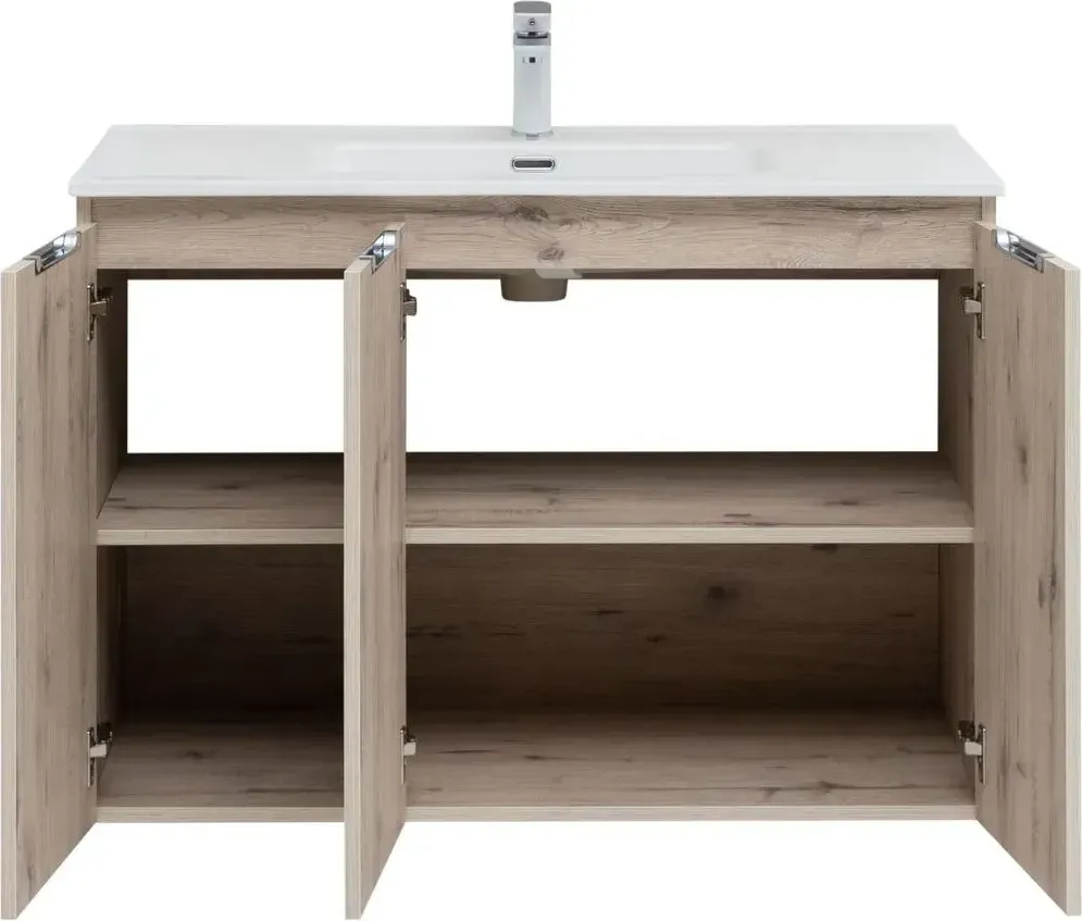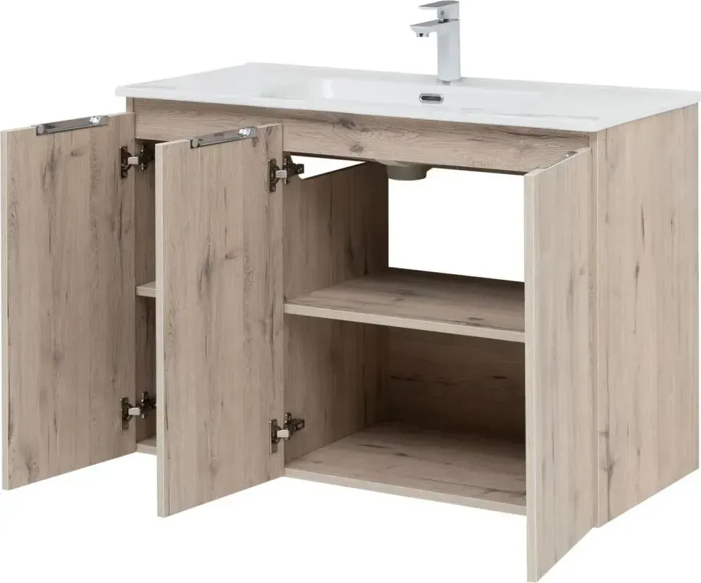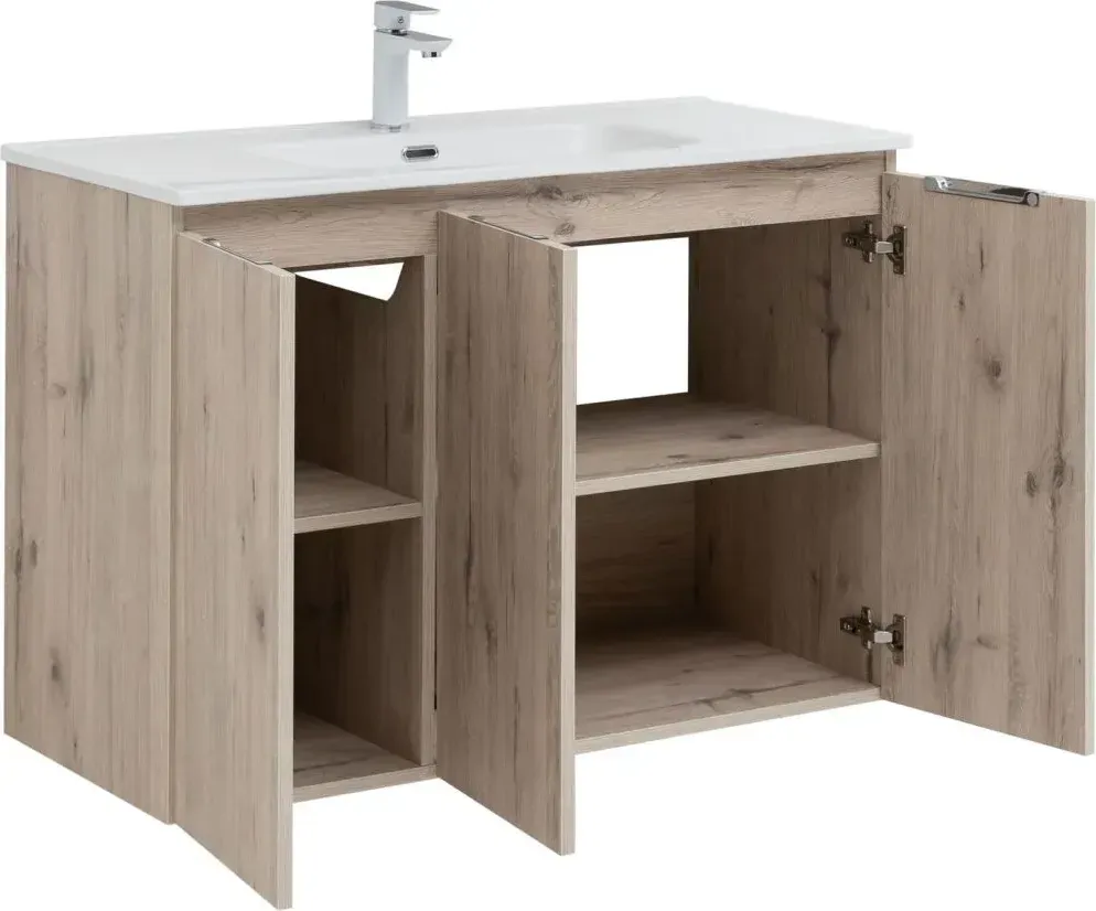 Тумба с раковиной Aquanet Алвита New 100 подвесная дуб веллингтон белый с 3-мя дверцами