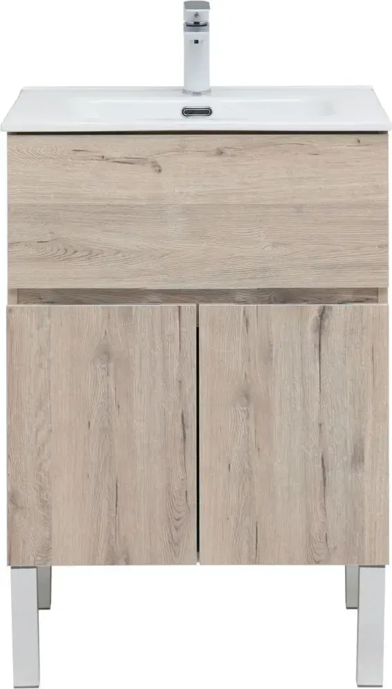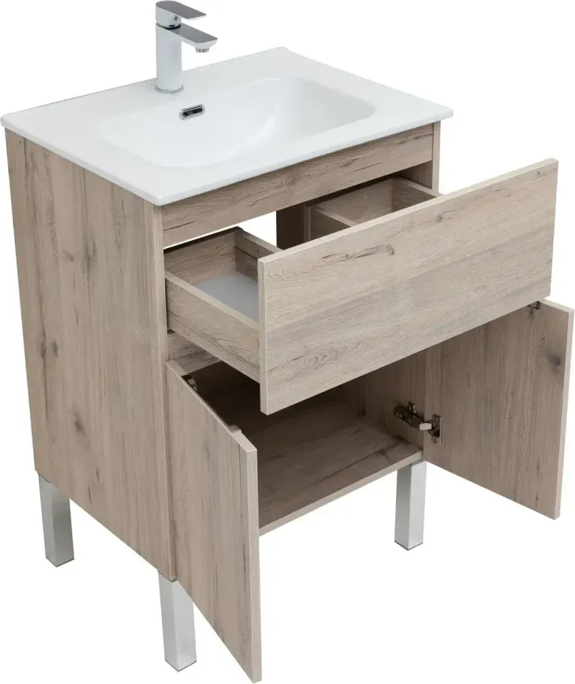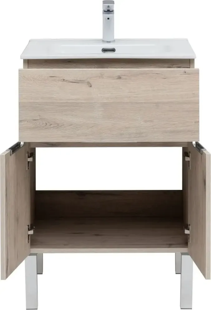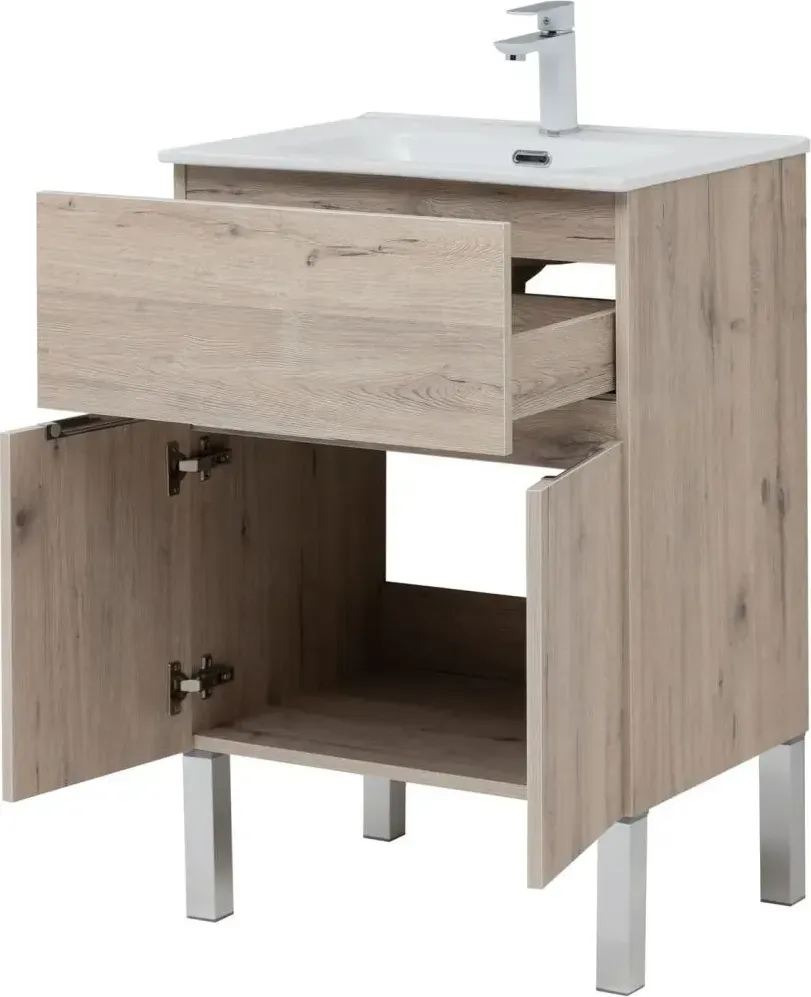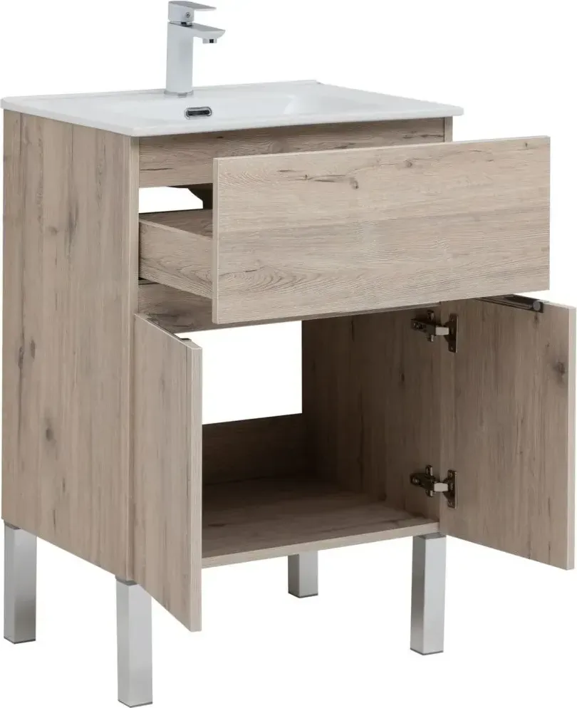 Тумба с раковиной Aquanet Алвита New 60 напольная дуб веллингтон белый