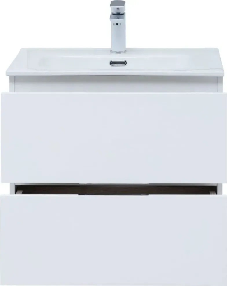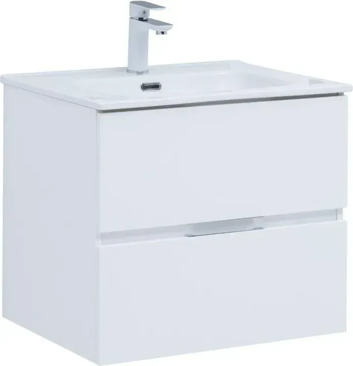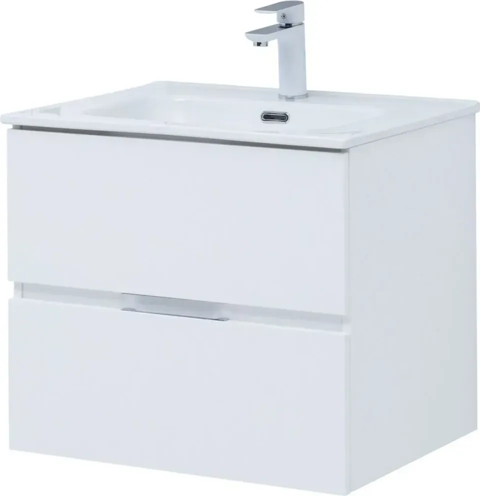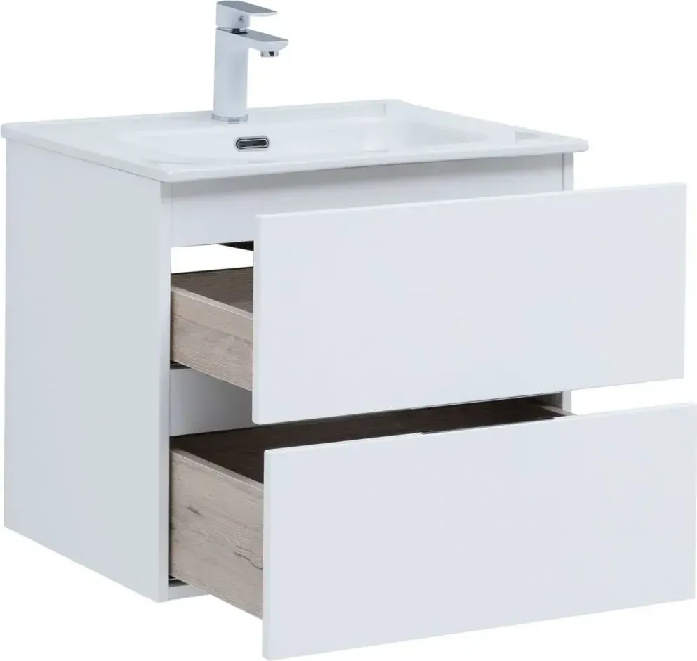 Тумба с раковиной Aquanet Алвита New 60 подвесная белая матовая с 2-мя ящиками