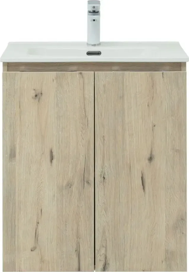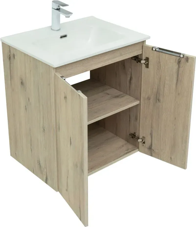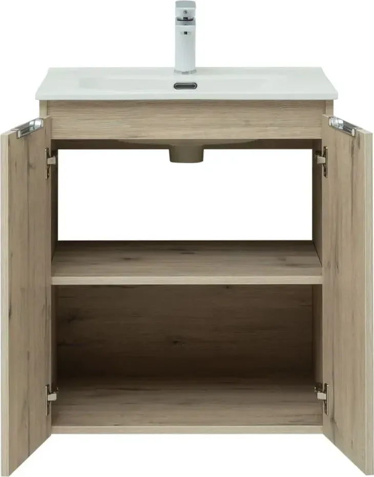 Тумба с раковиной Aquanet Алвита New 60 подвесная дуб веллингтон белый с 2-мя дверцами