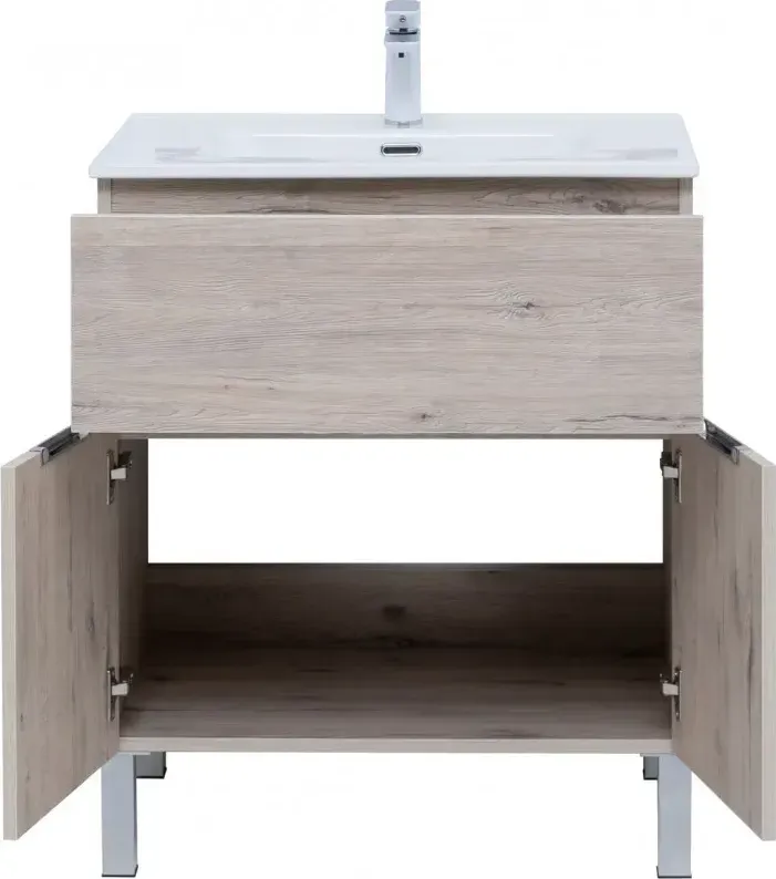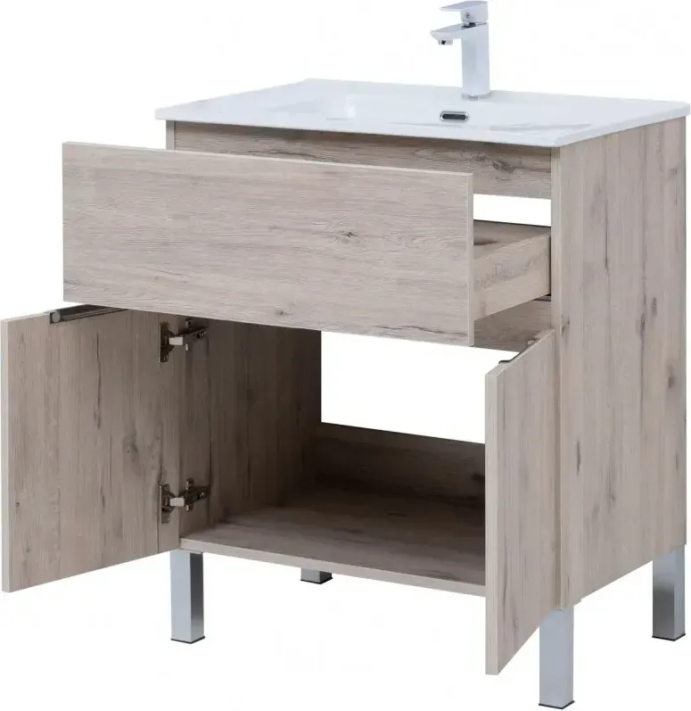Тумба с раковиной Aquanet Алвита New 70 напольная дуб веллингтон белый