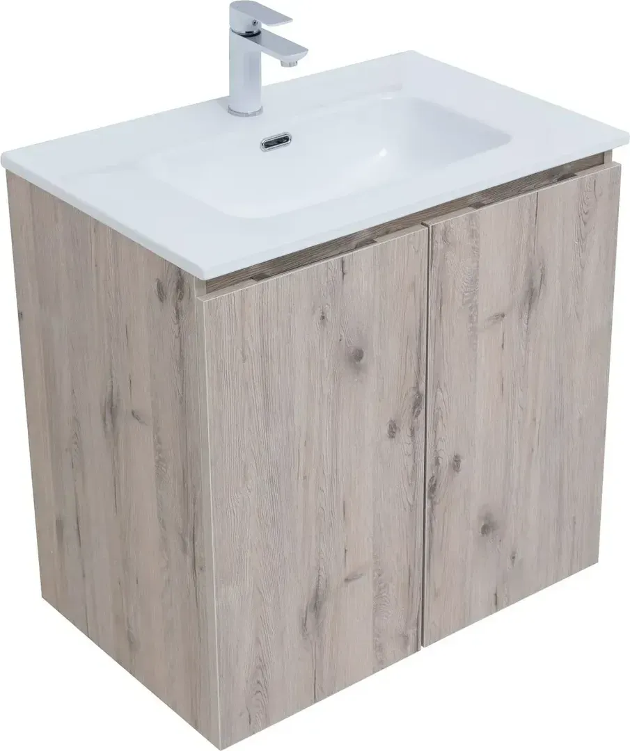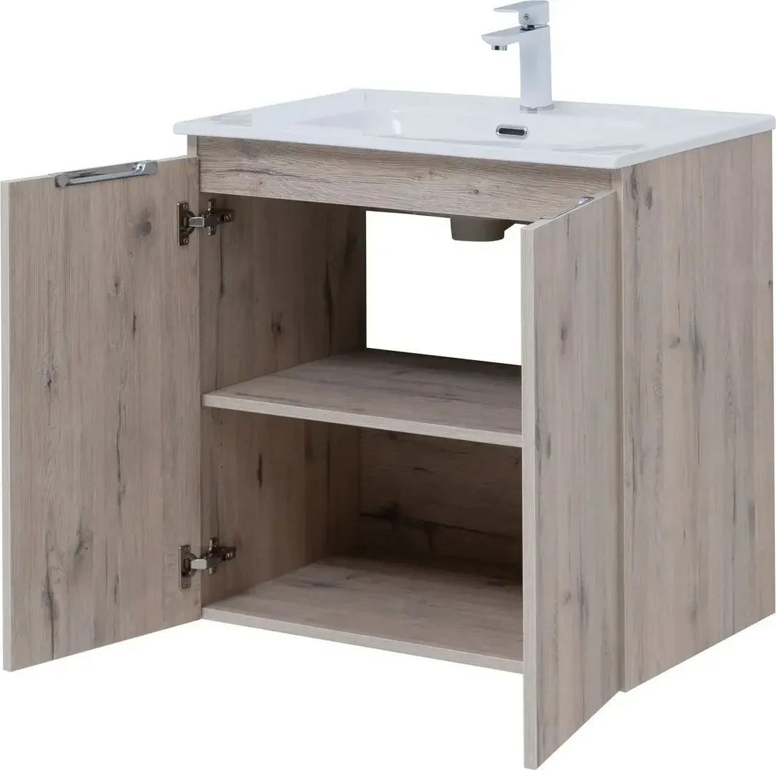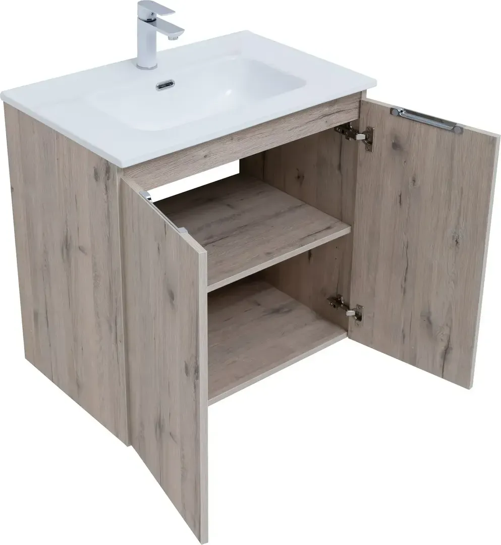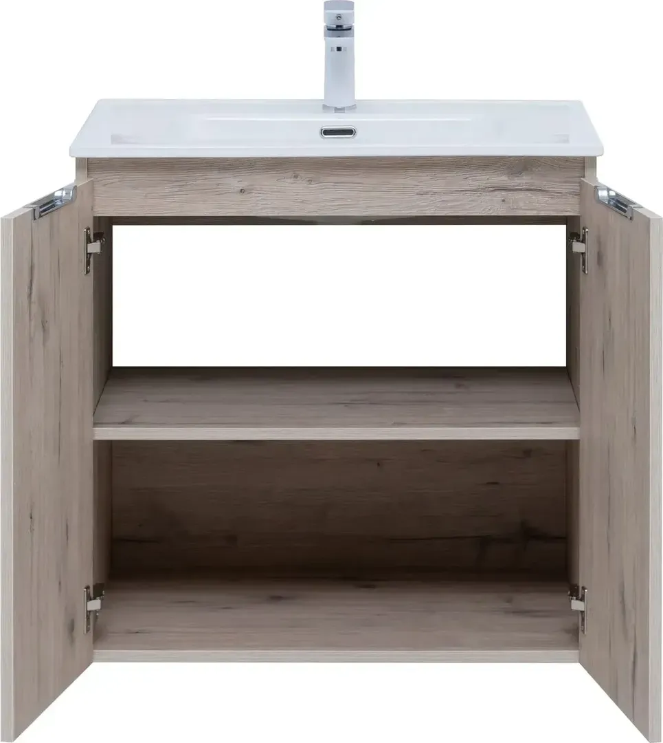 Тумба с раковиной Aquanet Алвита New 70 подвесная дуб веллингтон белый с 2-мя дверцами