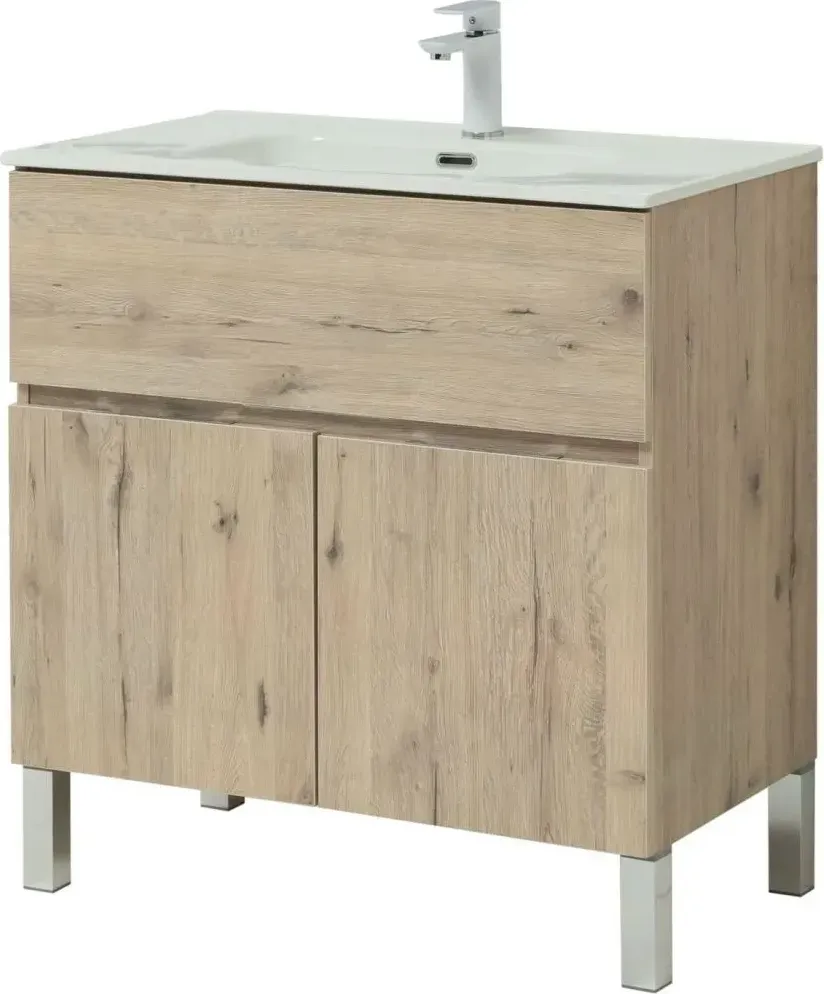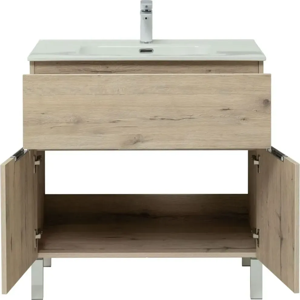 Тумба с раковиной Aquanet Алвита New 80 напольная дуб веллингтон белый