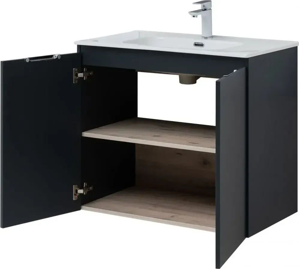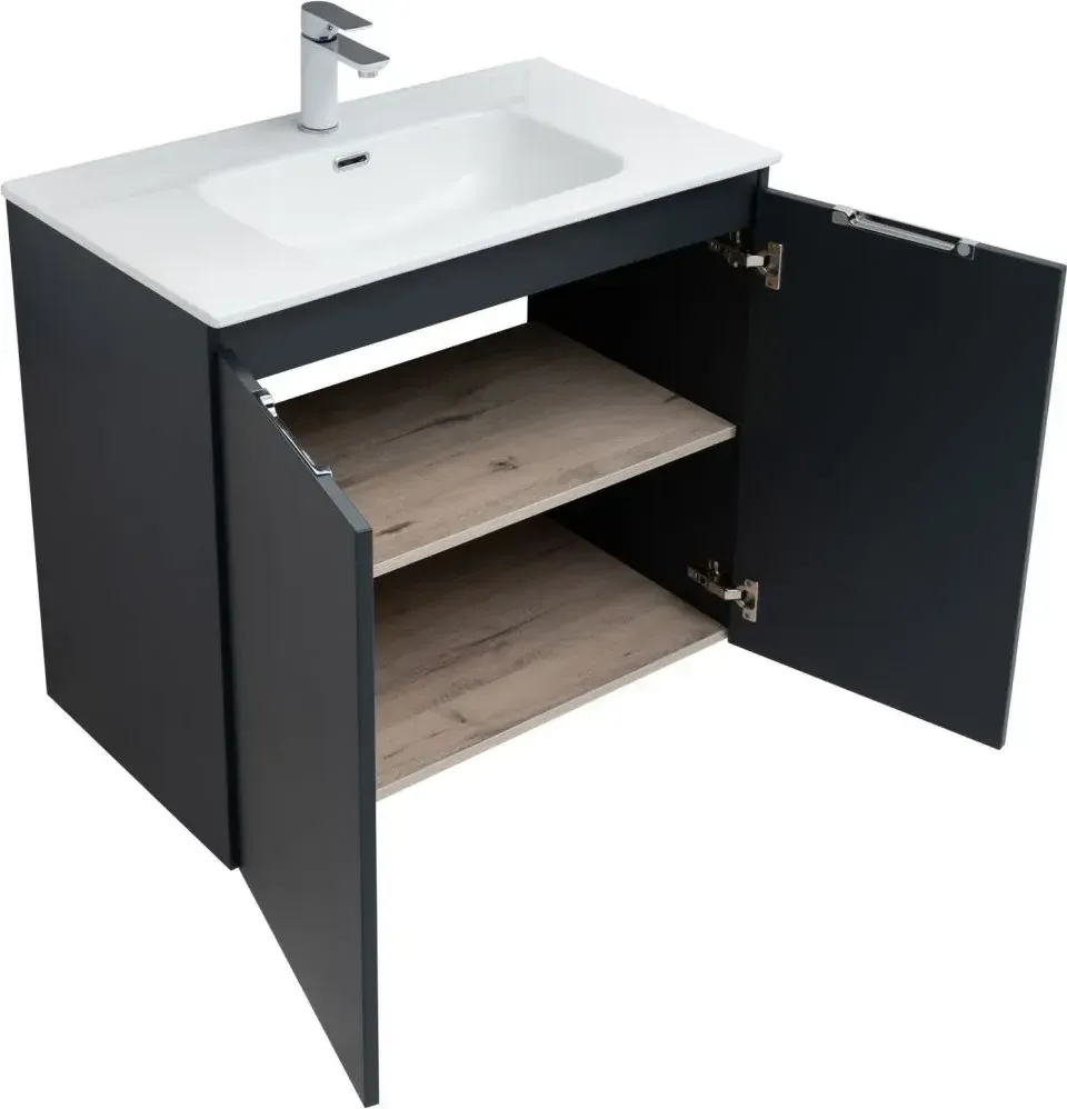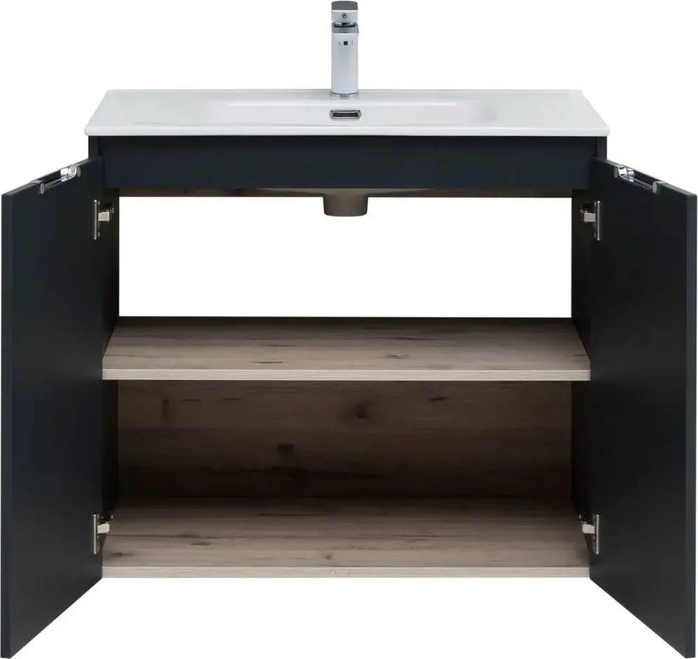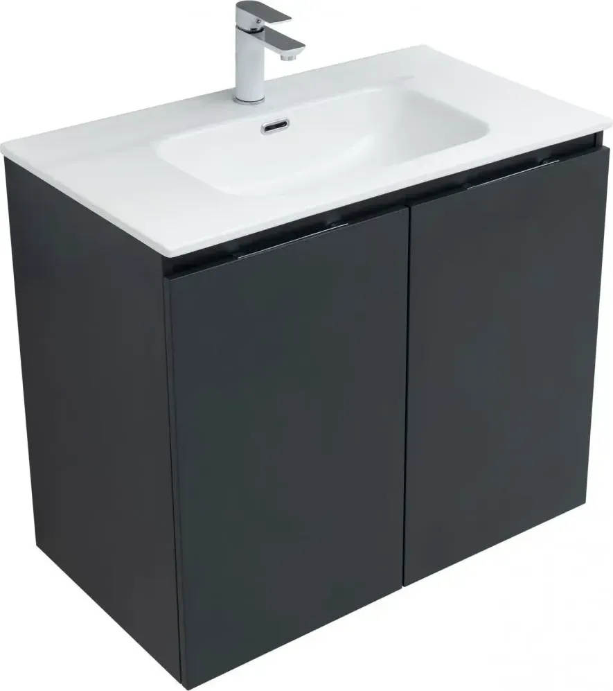 Тумба с раковиной Aquanet Алвита New 80 подвесная антрацит с 2-мя дверцами