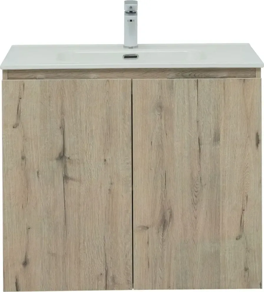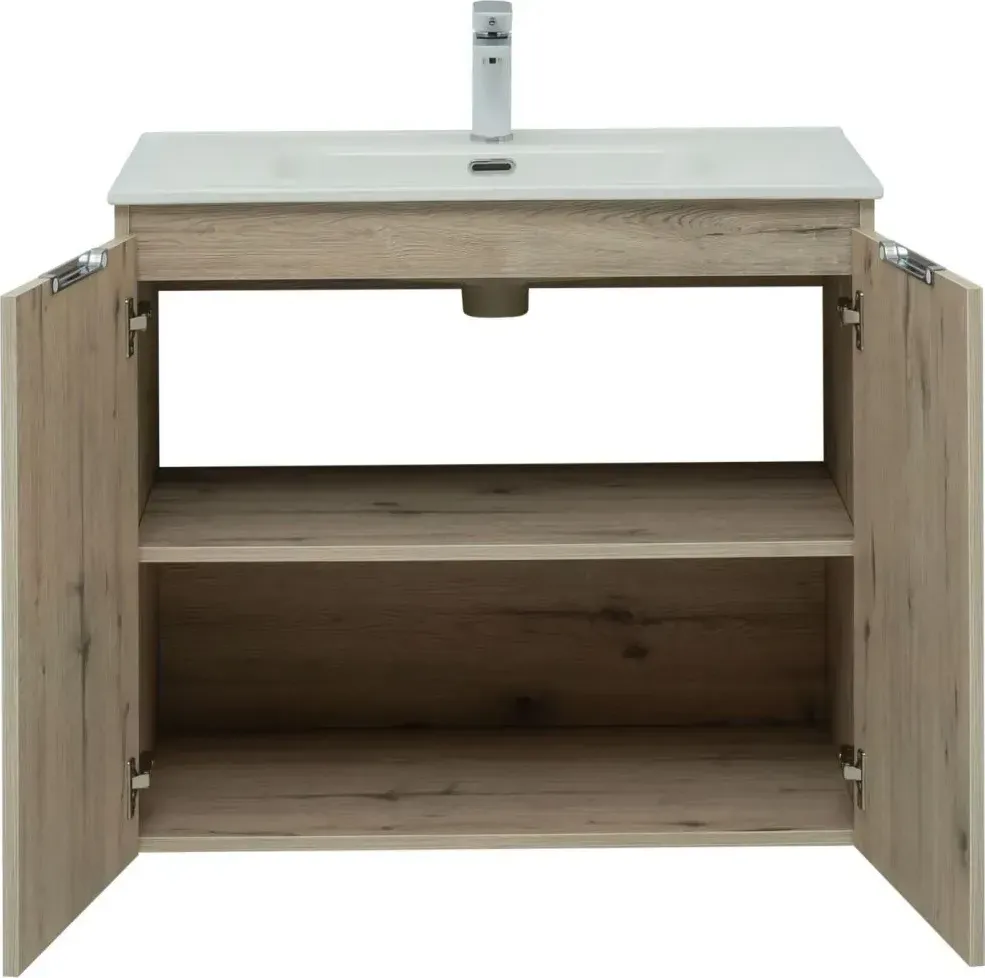 Тумба с раковиной Aquanet Алвита New 80 подвесная дуб веллингтон белый с 2-мя дверцами