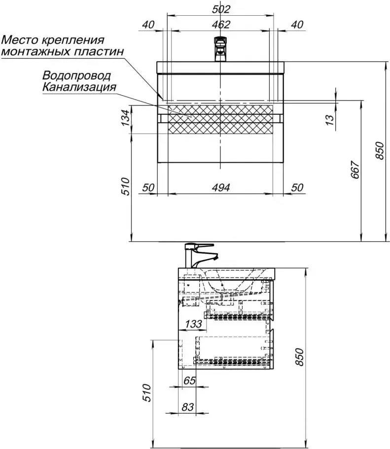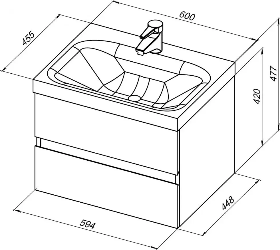 Тумба с раковиной Aquanet Беркли 59.4 подвесная