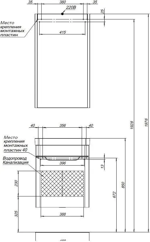 | Расположение смесителя | Посередине |