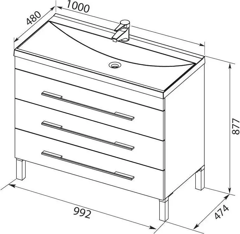 Тумба с раковиной Aquanet Верона 100.2 напольная с 3-мя ящиками с раковиной Нота
