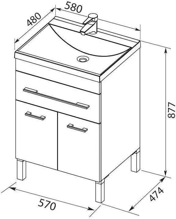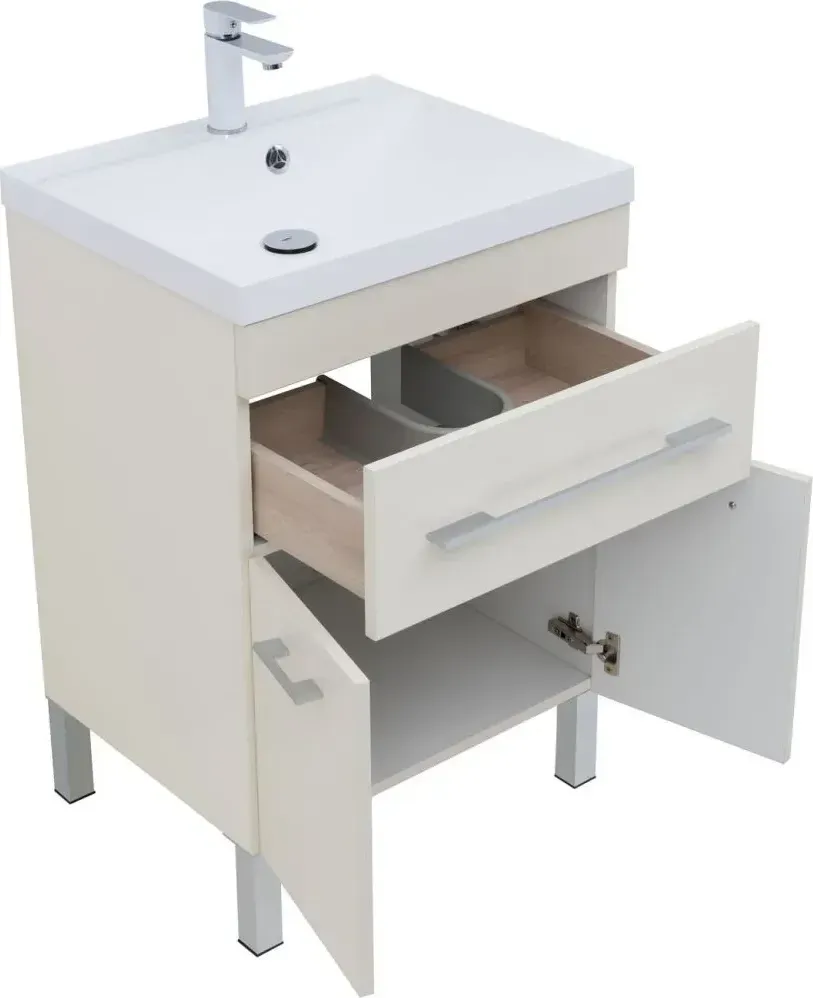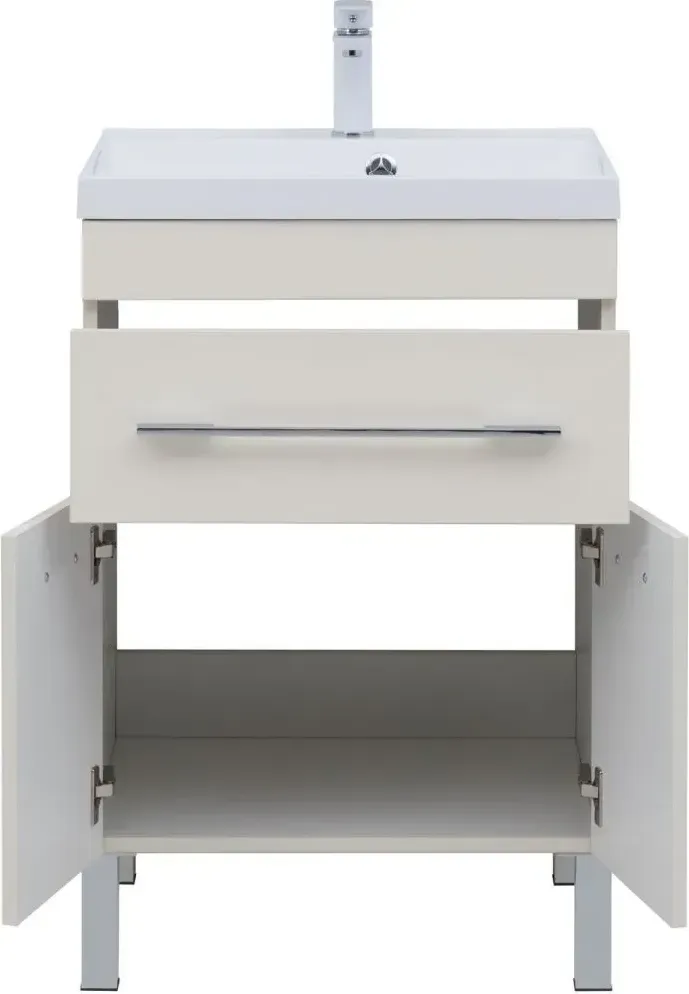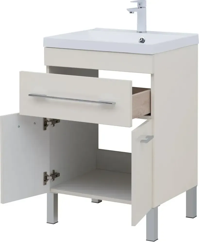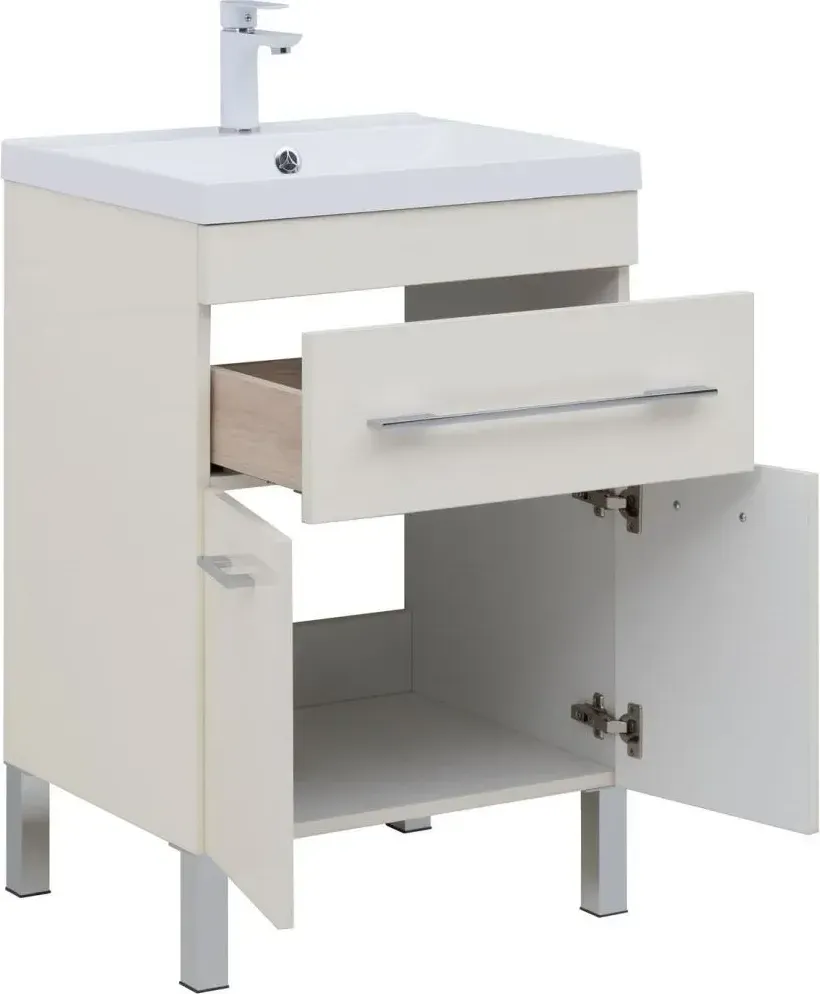 Тумба с раковиной Aquanet Верона 57 напольная крем с ящиком и 2-мя дверцами