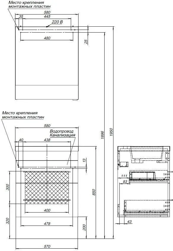 Вид основания под раковину | Тумба |
