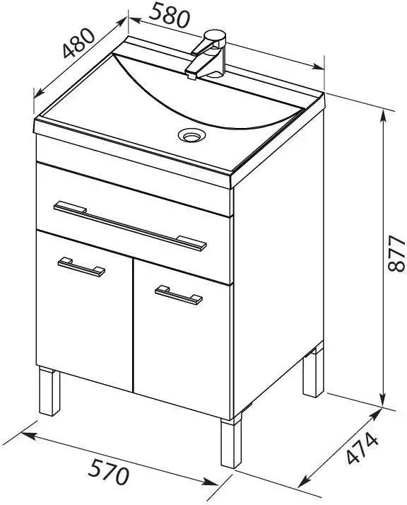 Тумба с раковиной Aquanet Верона 58 напольная с ящиком и 2-мя дверцами с раковиной Нота
