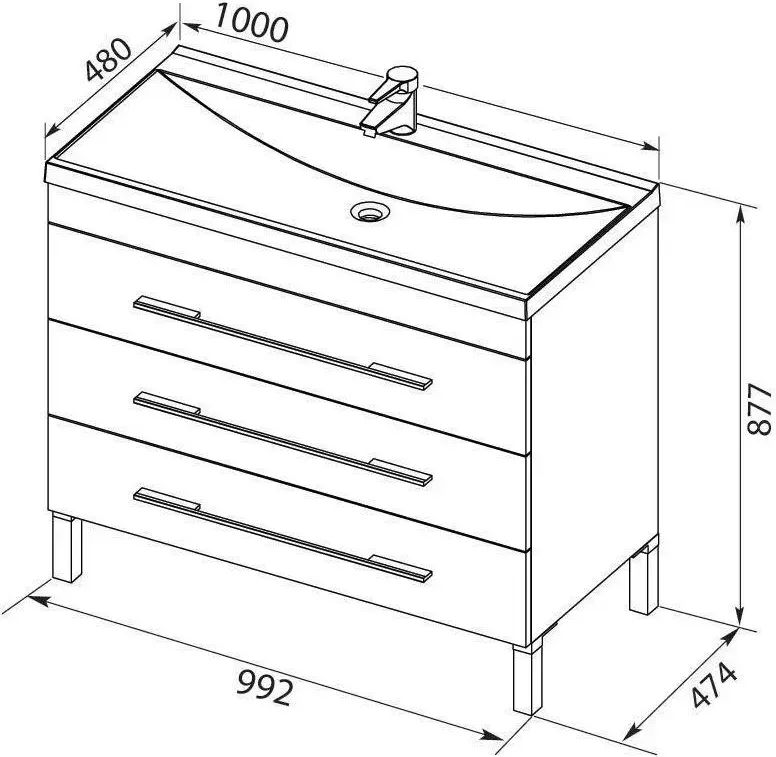Тумба с раковиной Aquanet Верона 99.2 напольная с 3-мя ящиками
