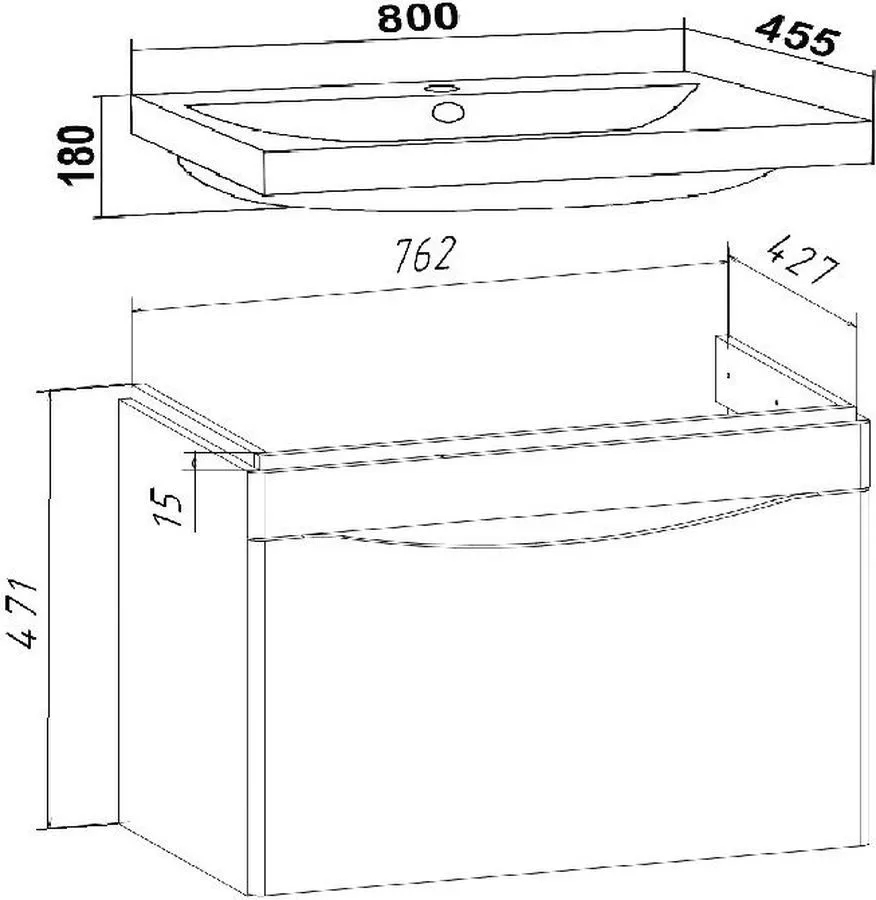 Тумба с раковиной Runo Афина 80 подвесная