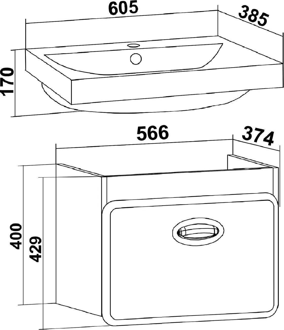Тумба с раковиной Runo Капри 60 подвесная