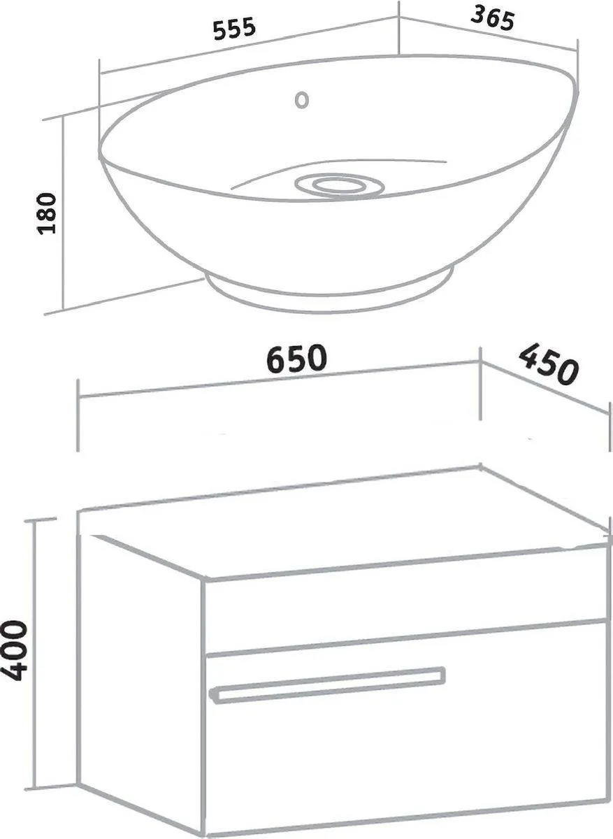 Тумба с раковиной Runo Вудлайн 65 подвесная