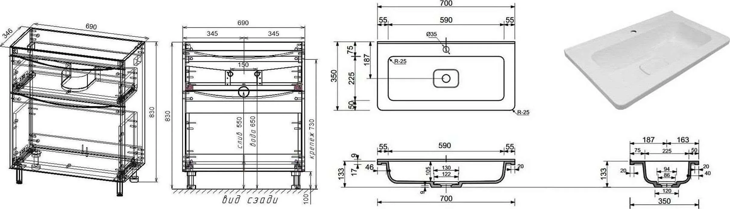 Тумба с раковиной Style Line Бергамо 70 серая напольная