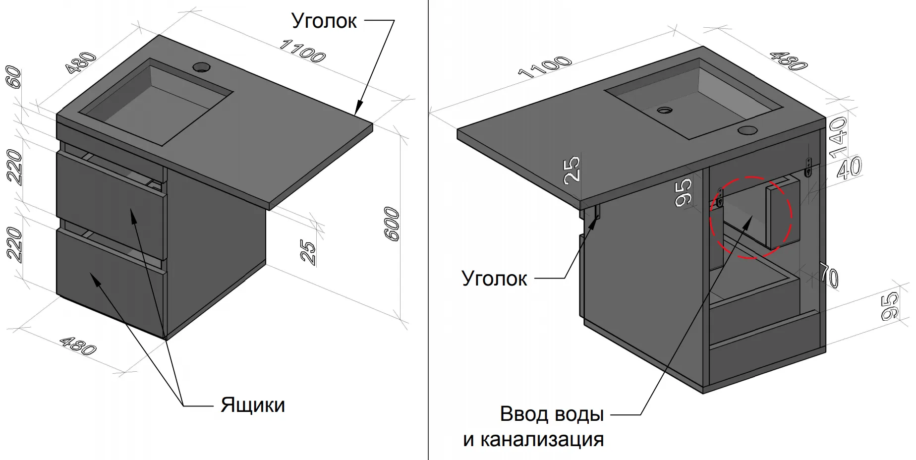 Тумба с раковиной Style Line Даллас 110 подвесная левая