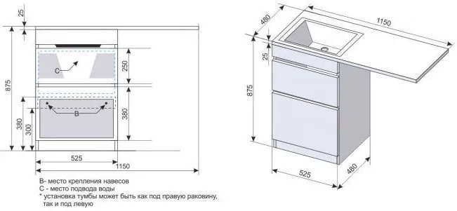 Тумба с раковиной Style Line Даллас 115 напольная левая