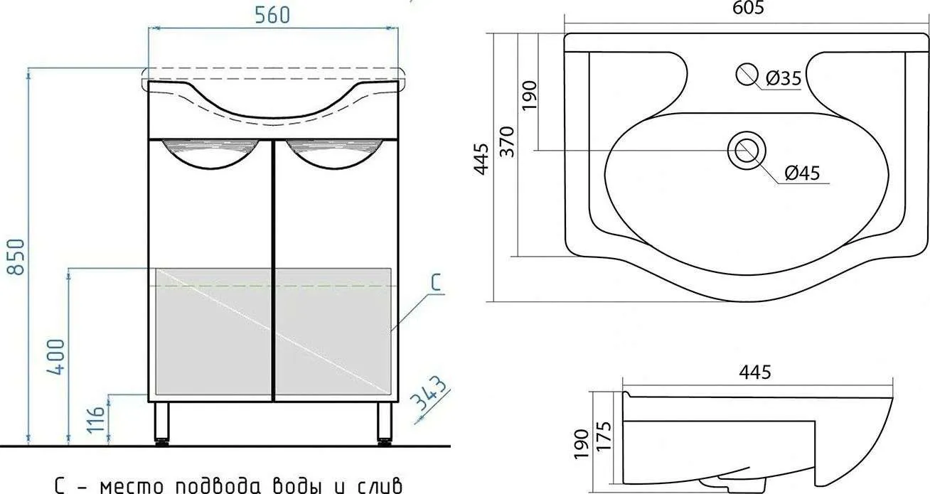 Тумба с раковиной Style Line Жасмин 55 напольная