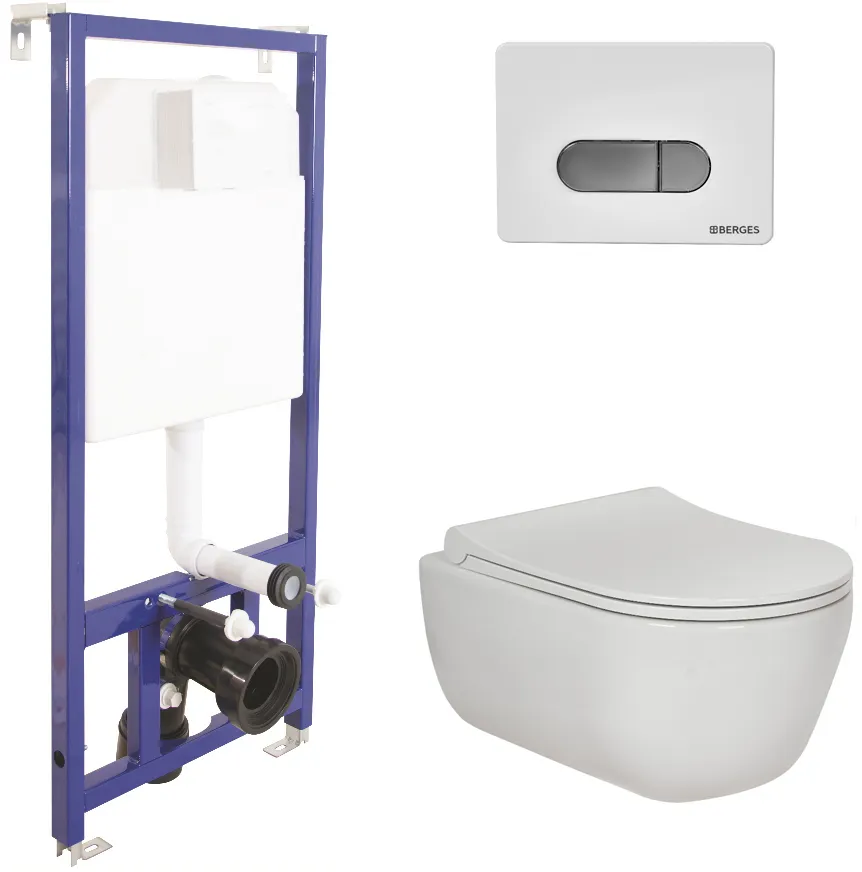 Унитаз безободковый с инсталляцией и кнопкой смыва Berges Wasserhaus Novum D7 047237