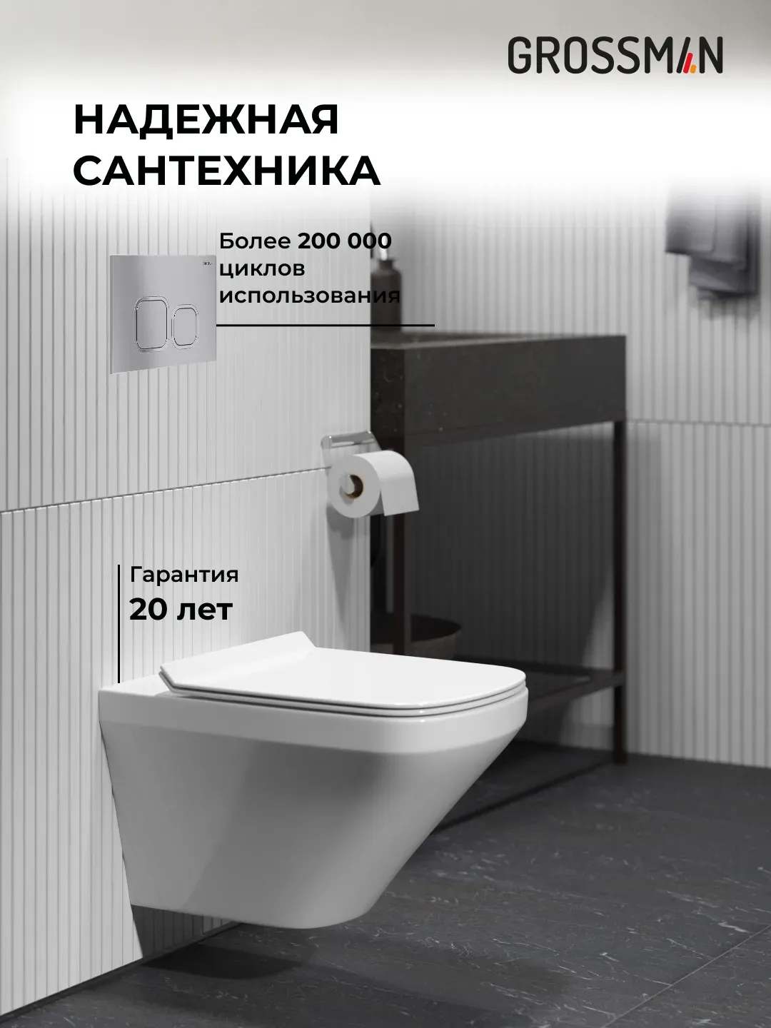 Унитаз Grossman 97.4440S.02.110 с инсталляцией и хром матовой кнопкой смыва