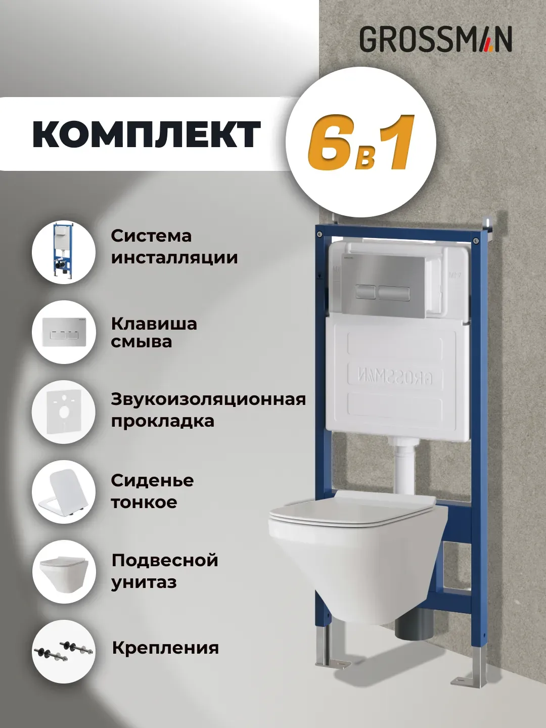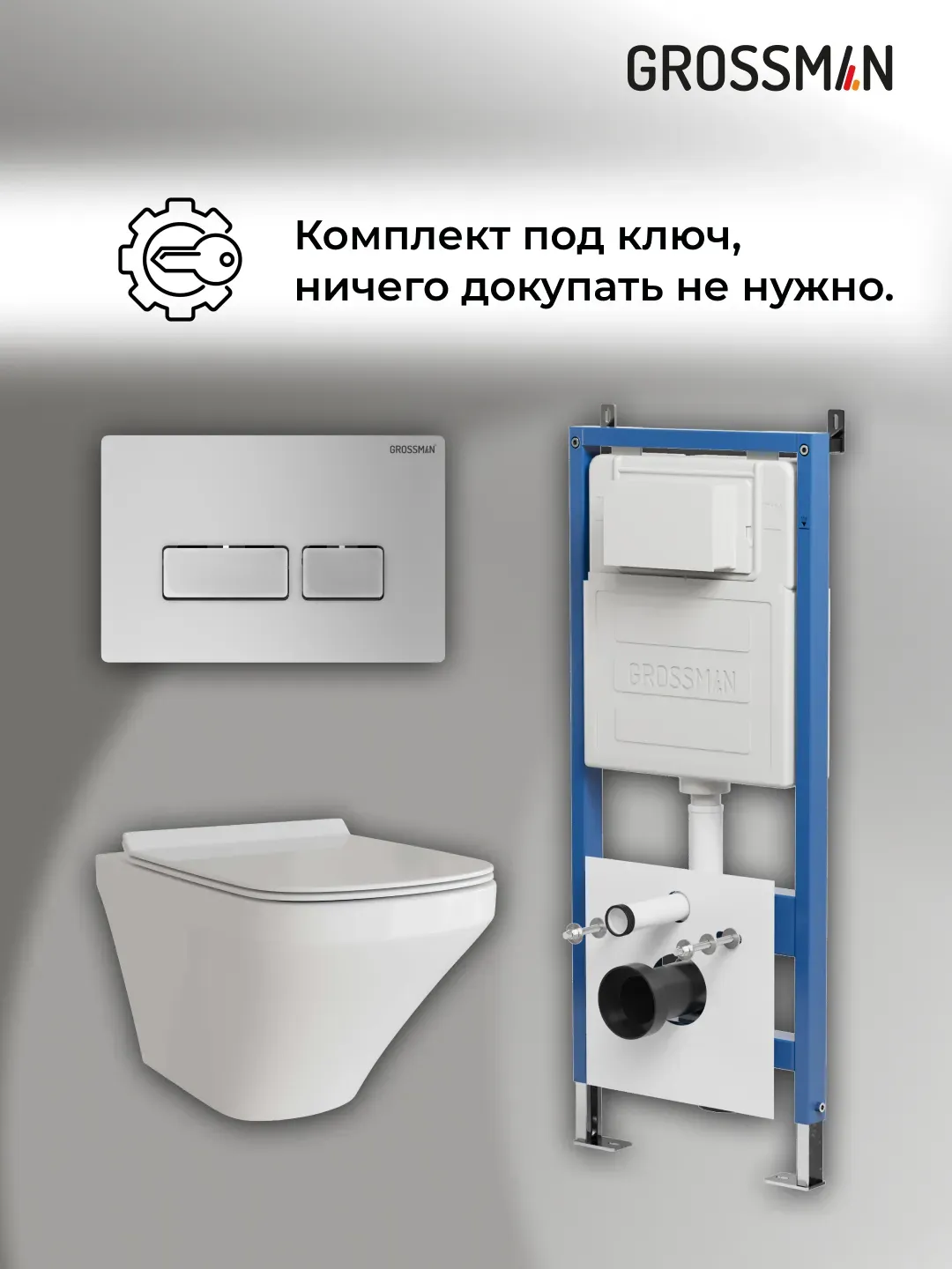 Унитаз Grossman 97.4440S.03.110 с инсталляцией и хром матовой кнопкой смыва