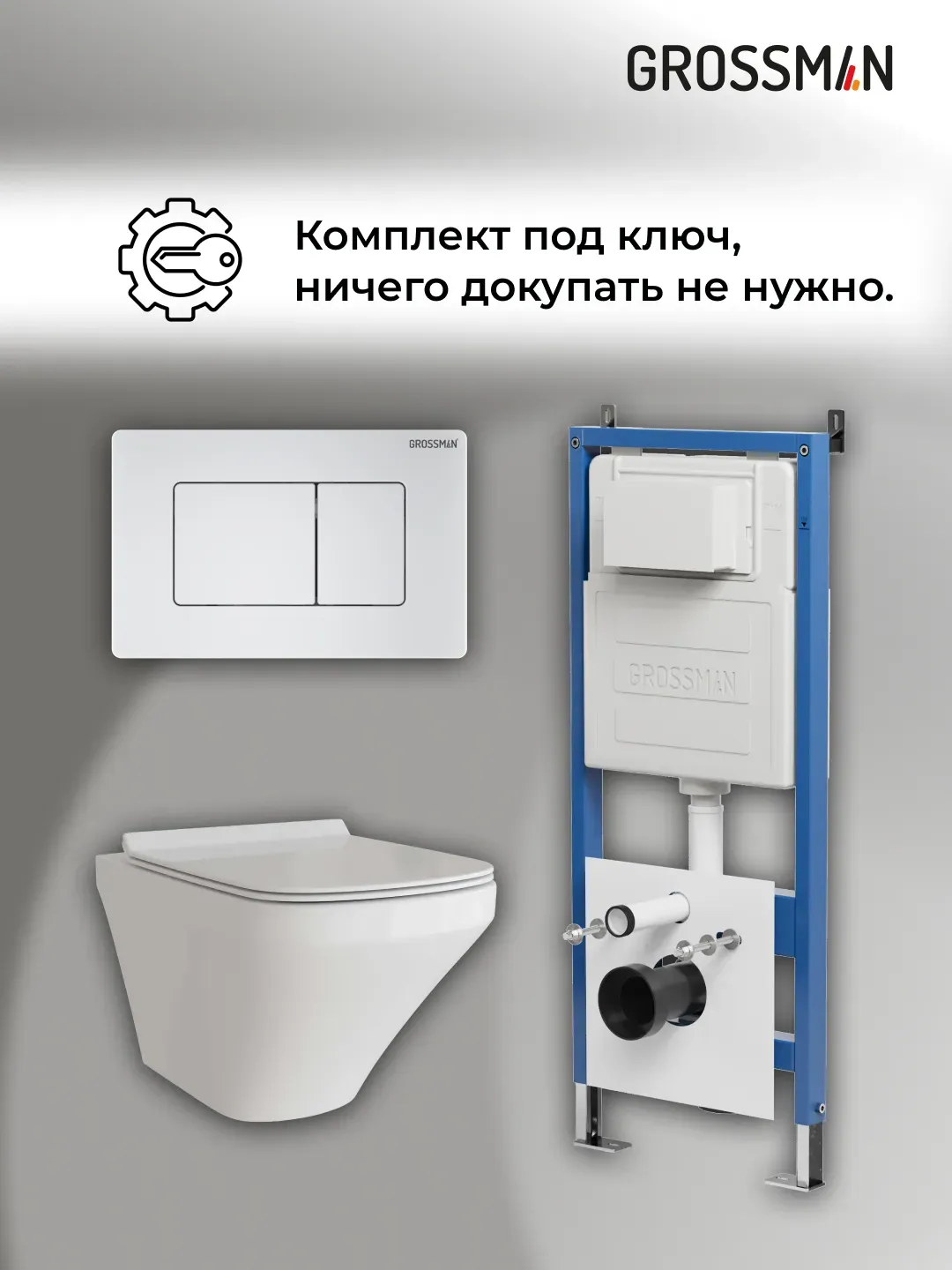 Унитаз Grossman 97.4440S.04.01M с инсталляцией и белой матовой кнопкой смыва