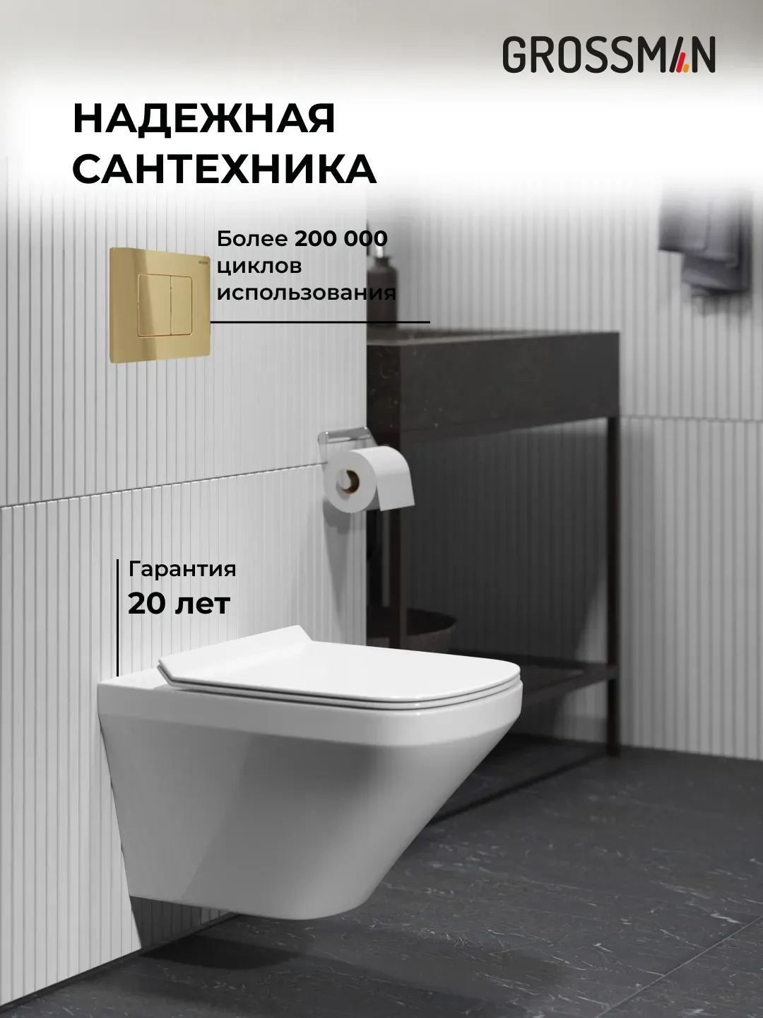 Унитаз Grossman 97.4440S.04.32M с инсталляцией и золото сатиновой кнопкой смыва