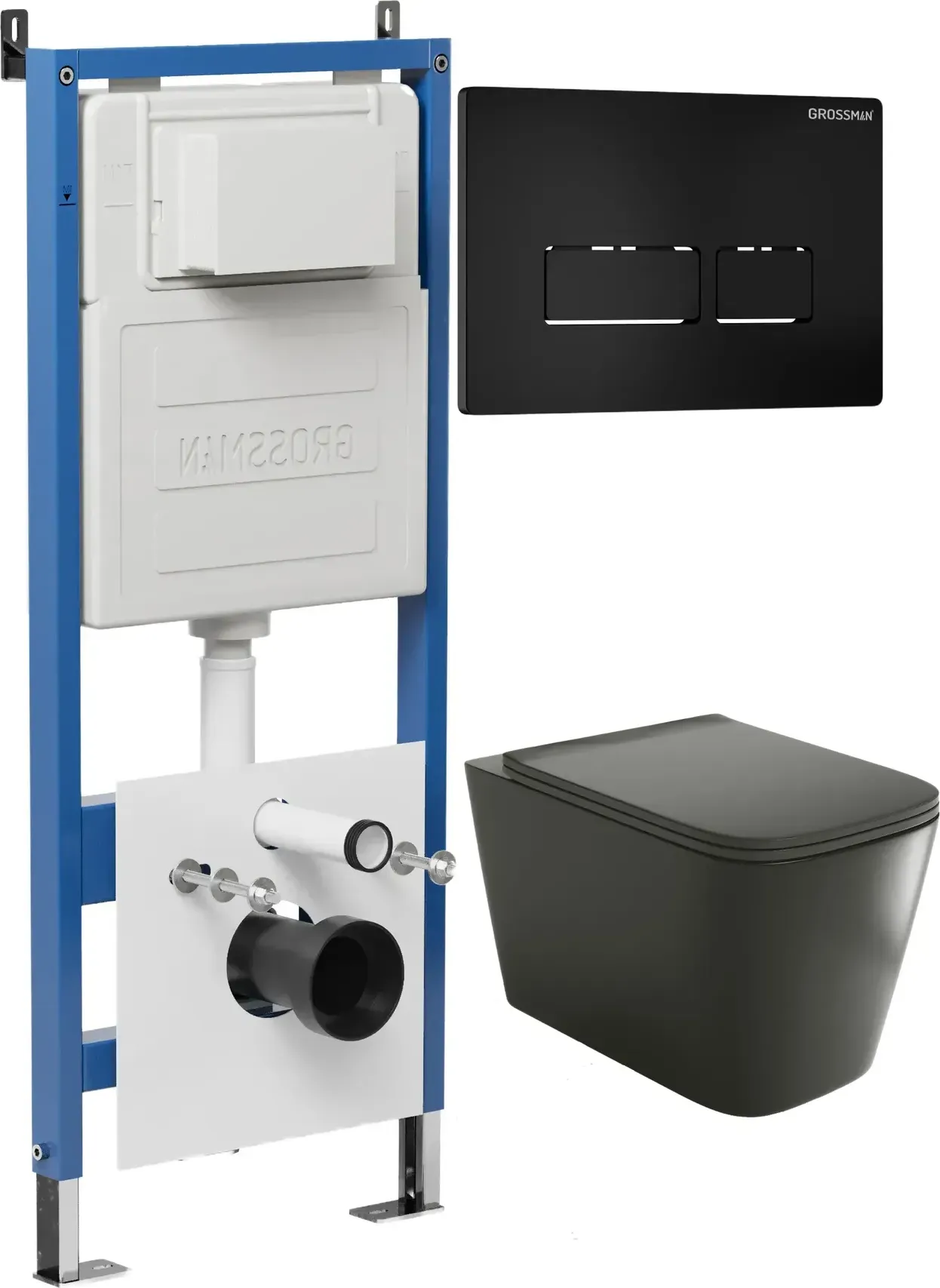 Унитаз Grossman 97.4441BMS.03.210 с инсталляцией и черной матовой кнопкой смыва