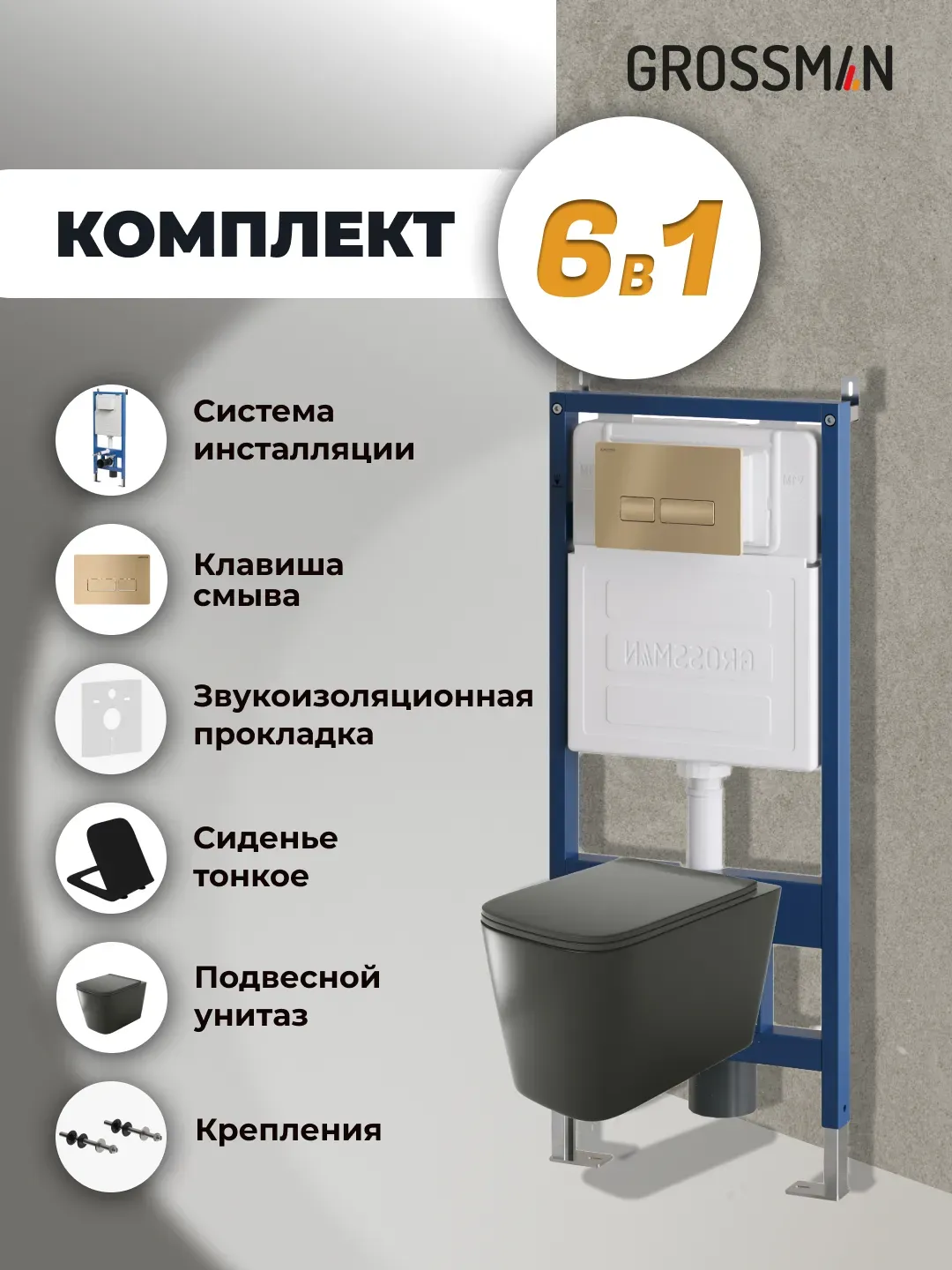 Унитаз Grossman 97.4441BMS.03.310 с инсталляцией и золото матовой кнопкой смыва