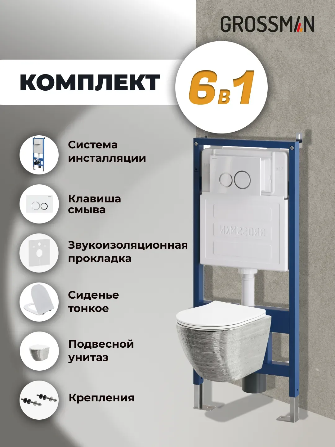 Унитаз Grossman 97.4455SWS.01.000 с инсталляцией и белой глянцевой кнопкой смыва