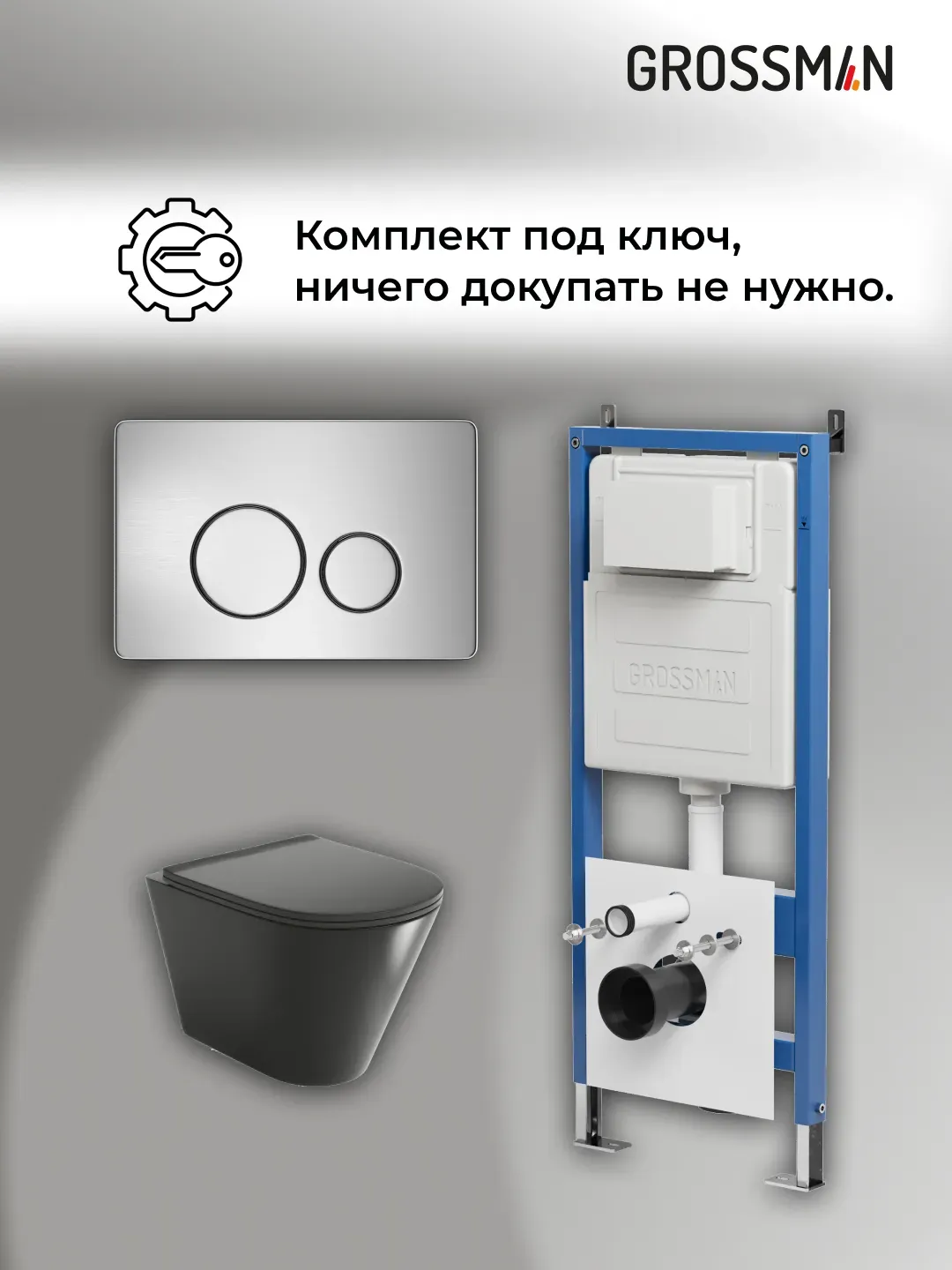 Унитаз Grossman 97.4477BMS.05.12M с инсталляцией и хром сатиновой кнопкой смыва