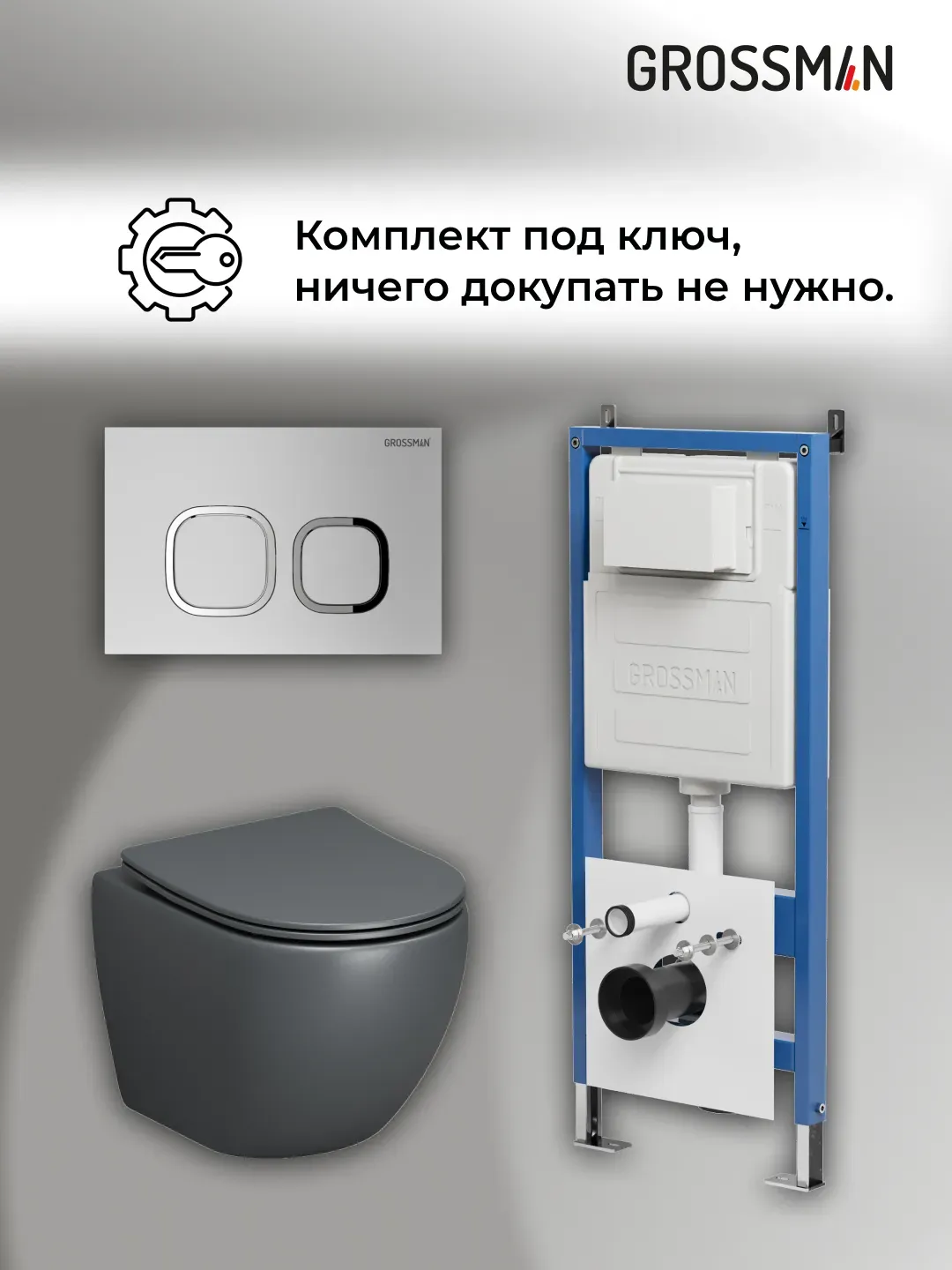 Унитаз Grossman Color 97.4455GMS.02.110 с инсталляцией и хром матовой кнопкой смыва