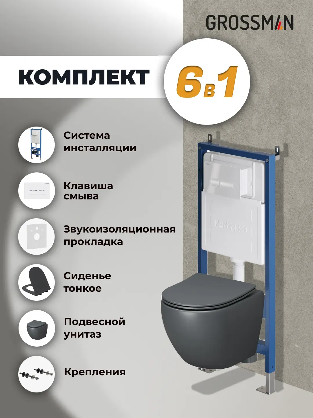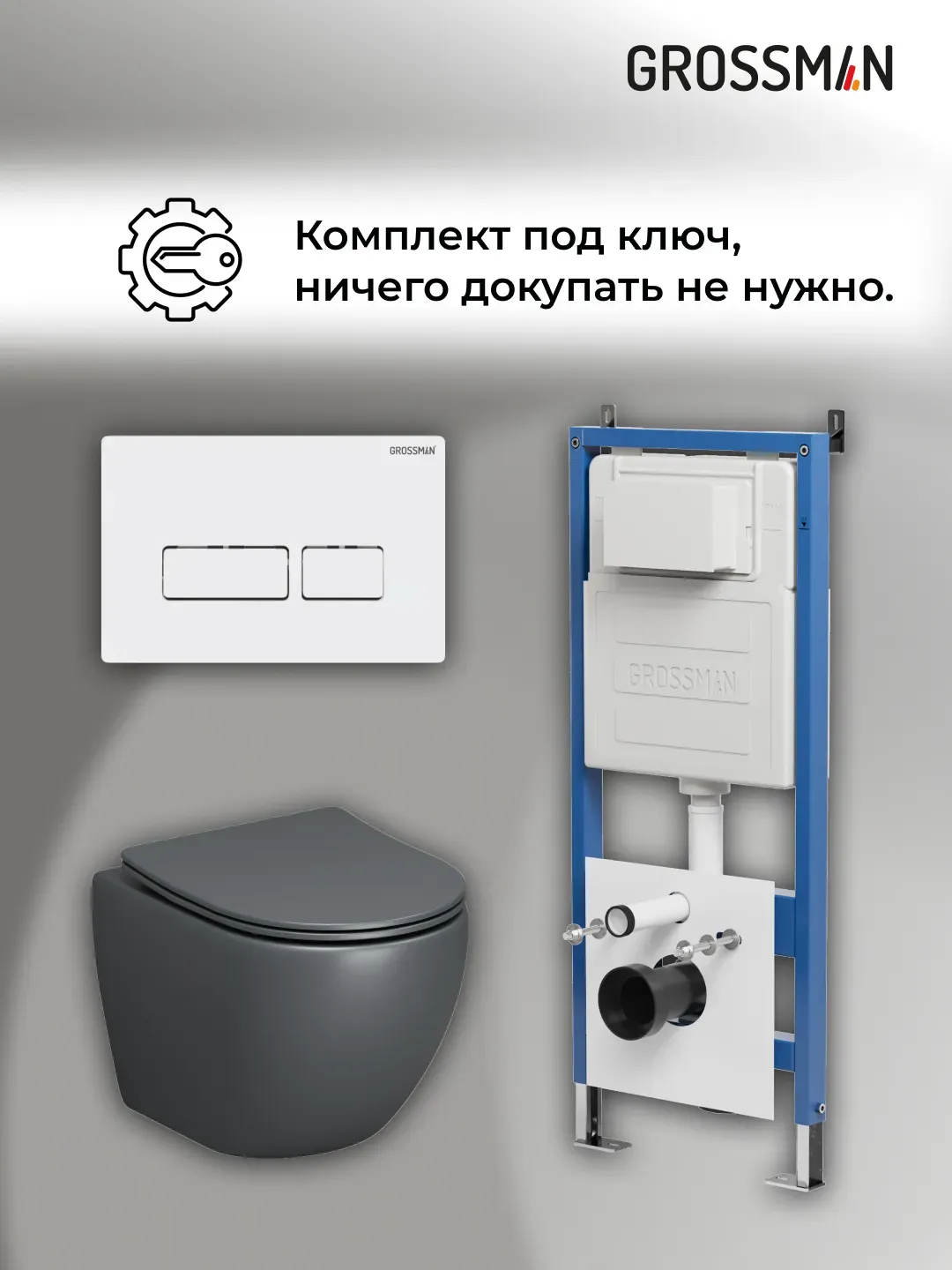Унитаз Grossman Color 97.4455GMS.03.000 с инсталляцией и белой глянцевой кнопкой смыва