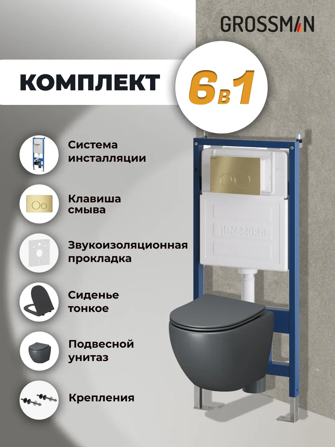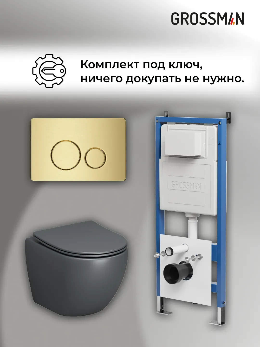 Унитаз Grossman Color 97.4455GMS.05.32M с инсталляцией и золото сатиновой кнопкой смыва