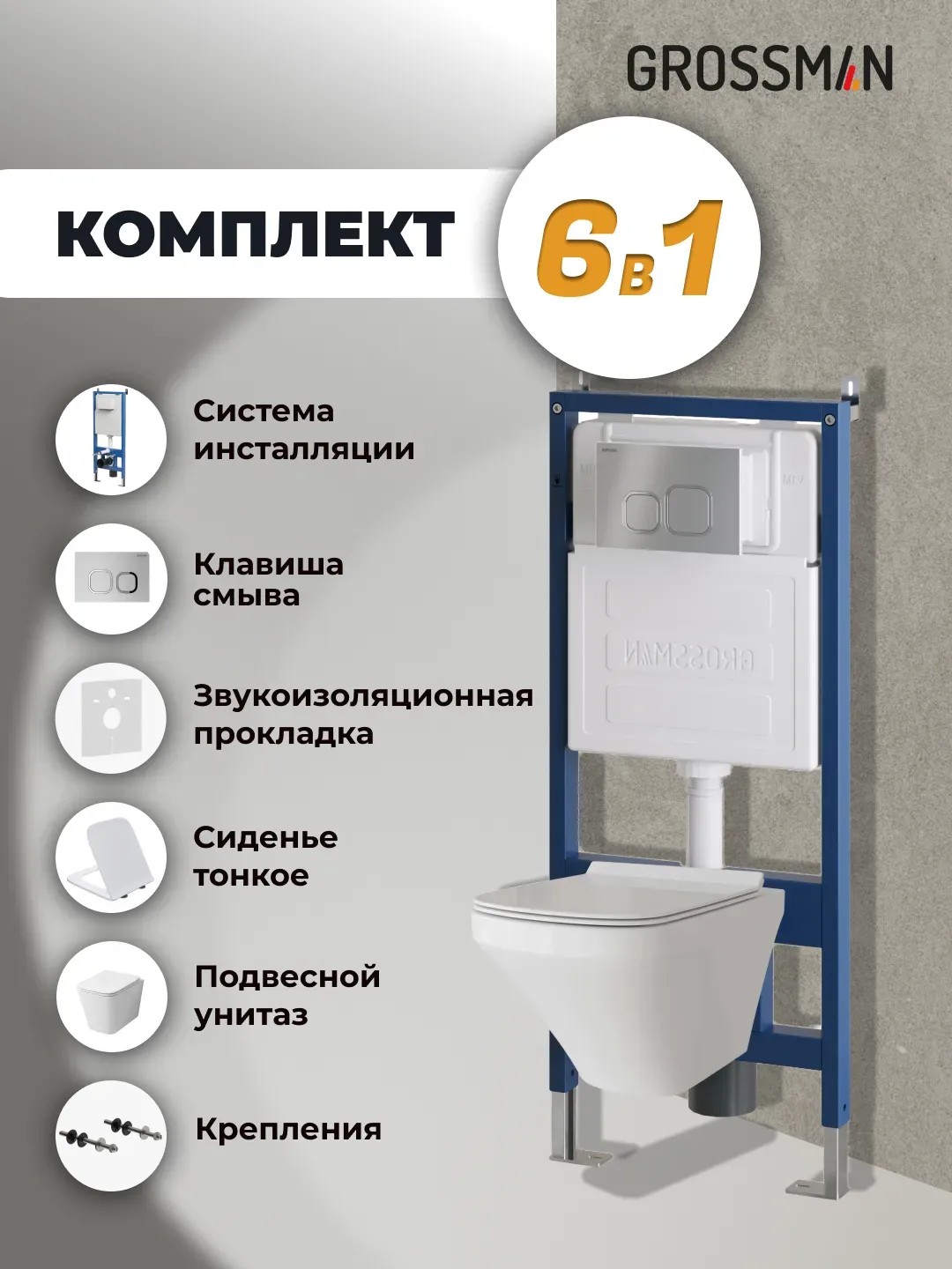 Унитаз Grossman Falcon 97.4441S.02.110 с инсталляцией и хром матовой кнопкой смыва