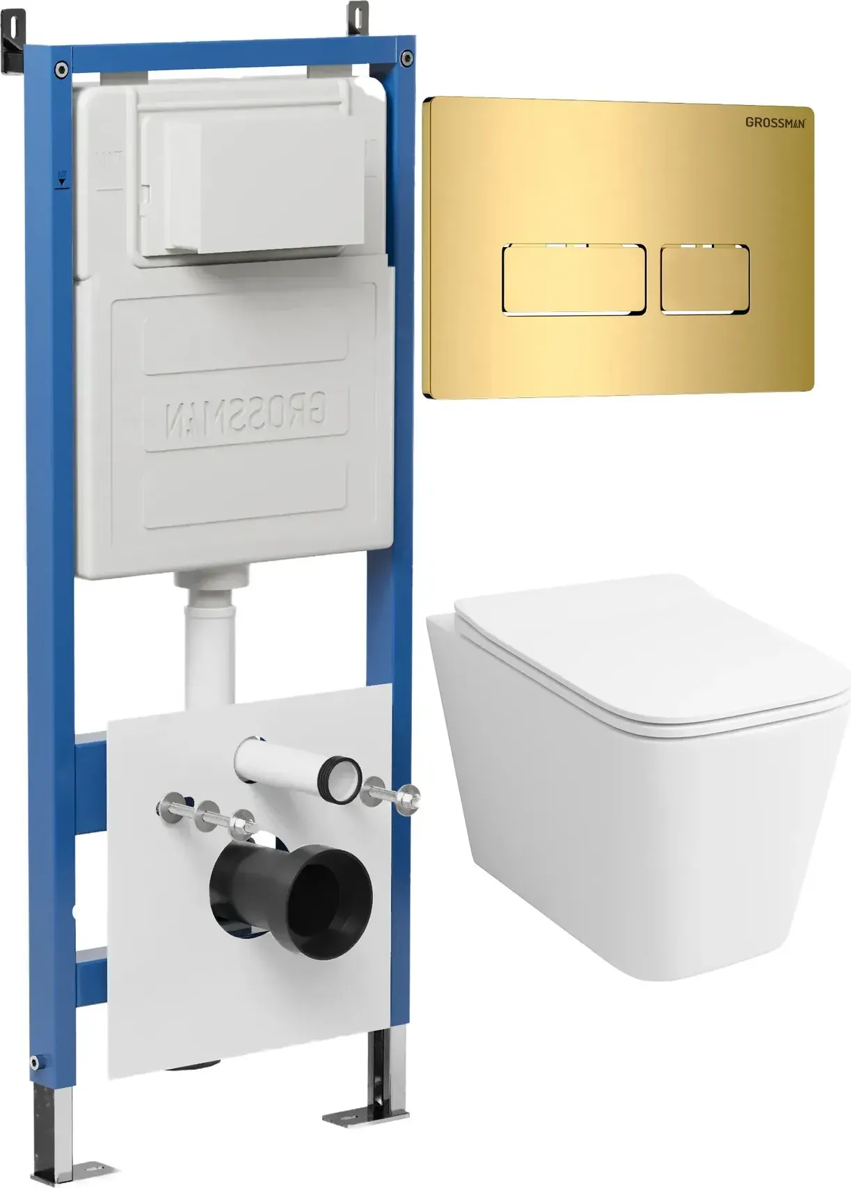 Унитаз Grossman Falcon 97.4441S.03.300 с инсталляцией и золото глянцевой кнопкой смыва