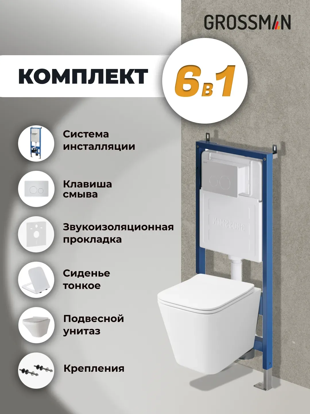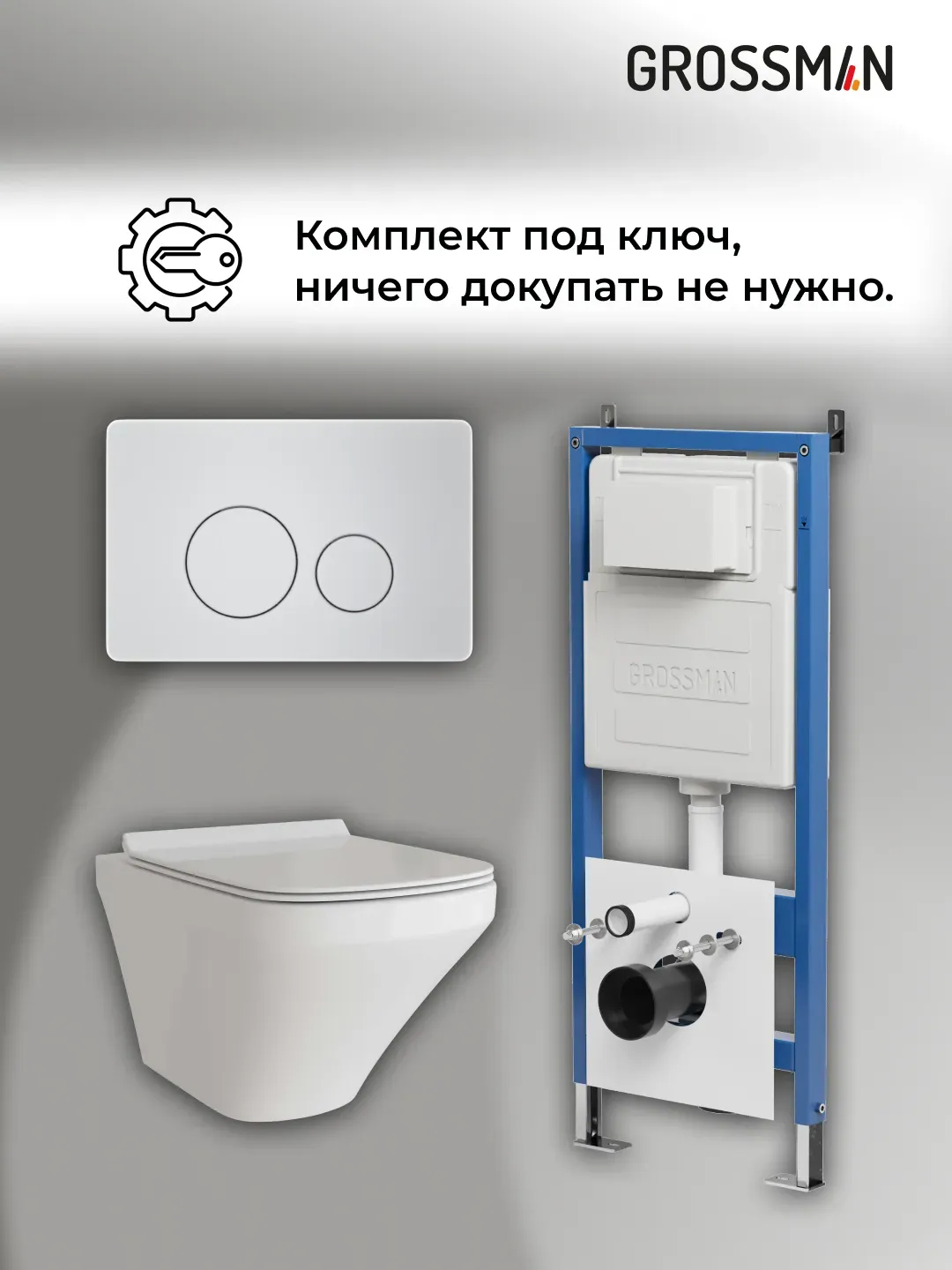 Унитаз Grossman Falcon 97.4441S.05.01M с инсталляцией и белой матовой кнопкой смыва