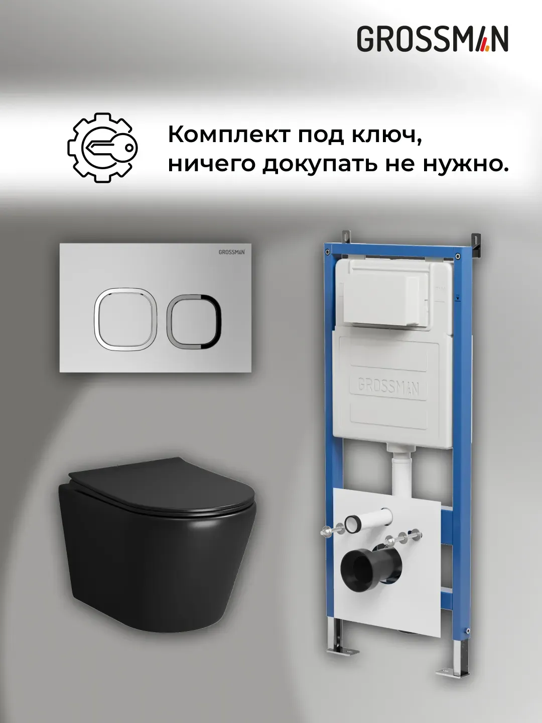Унитаз Grossman Fly 97.4478BMS.02.110 с инсталляцией и хром матовой кнопкой смыва