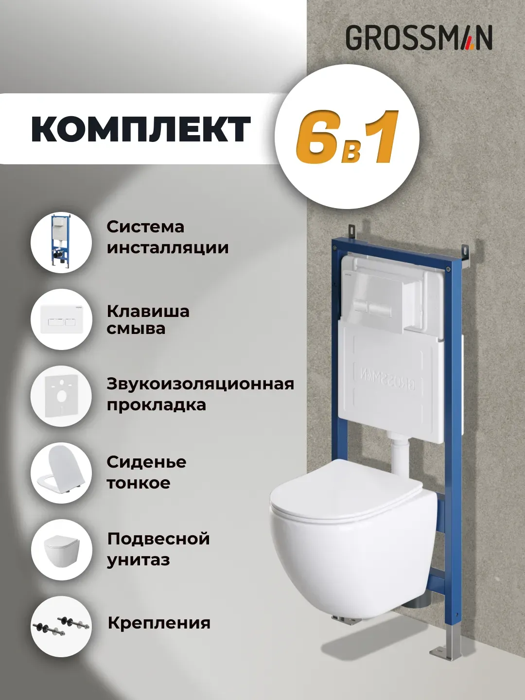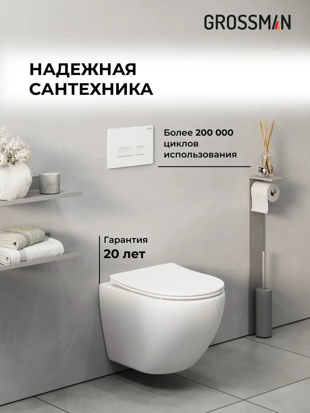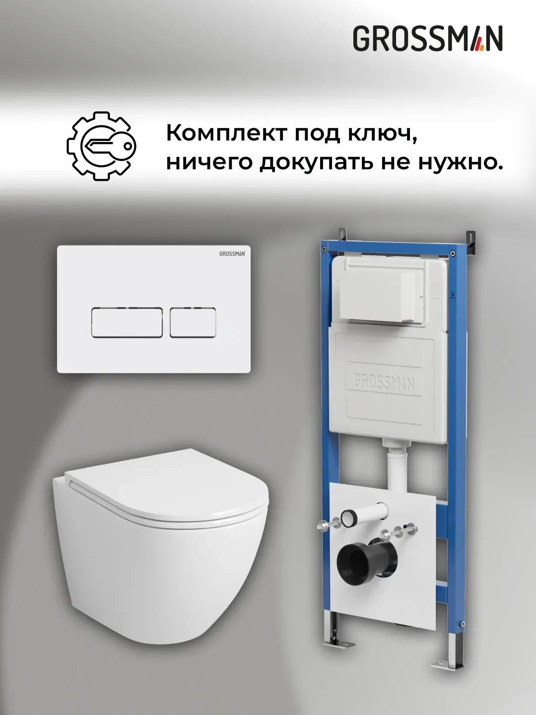 Унитаз Grossman Торнадо 97.4455SQ.03.000 с инсталляцией и белой глянцевой кнопкой смыва