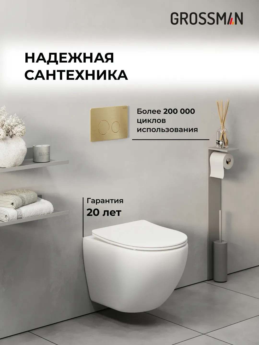 Унитаз Grossman Торнадо 97.4455SQ.05.32M с инсталляцией и золото сатиновой кнопкой смыва