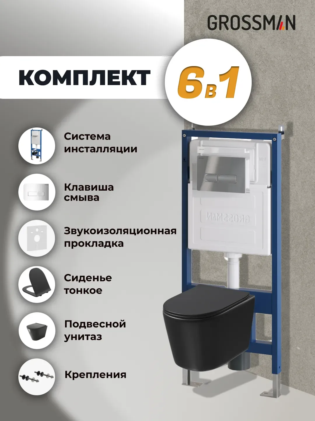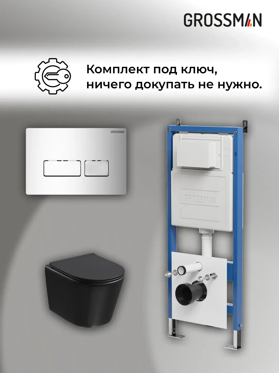 Унитаз Grossman Торнадо 97.4477BMSQ.03.100 с инсталляцией и хром глянцевой кнопкой смыва