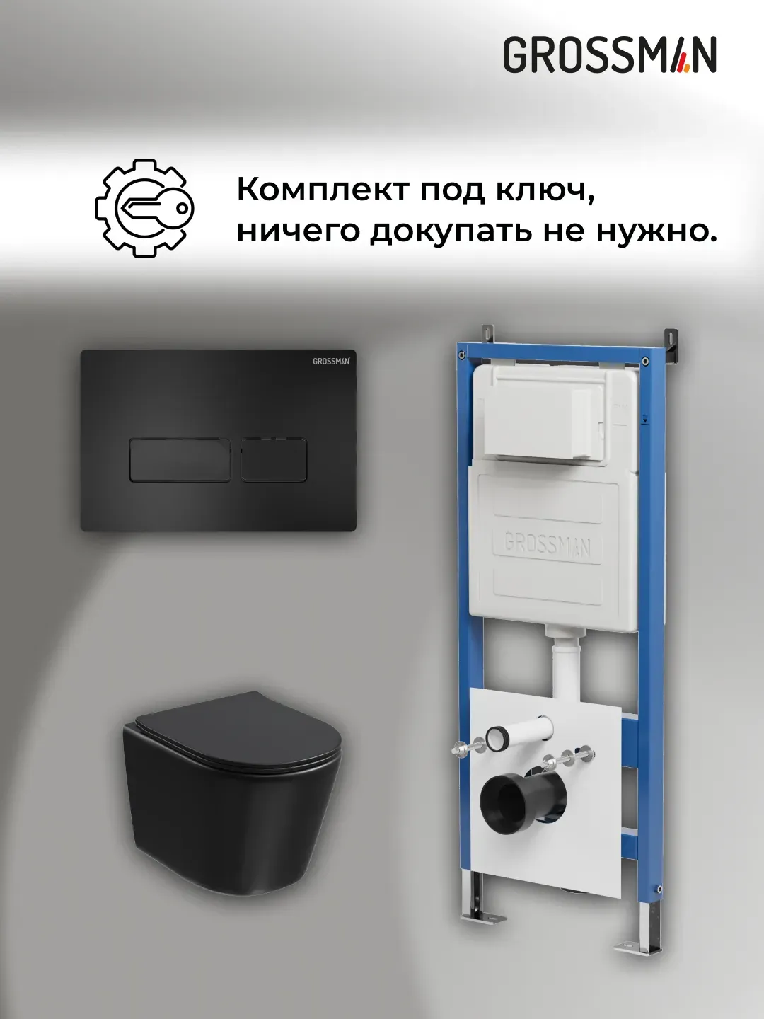 Унитаз Grossman Торнадо 97.4477BMSQ.03.210 с инсталляцией и черной матовой кнопкой смыва