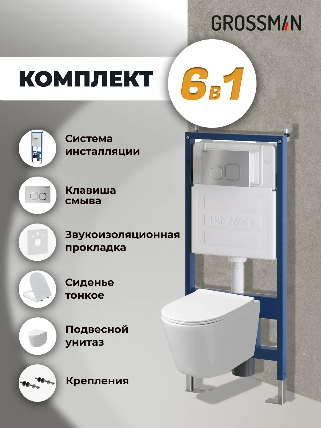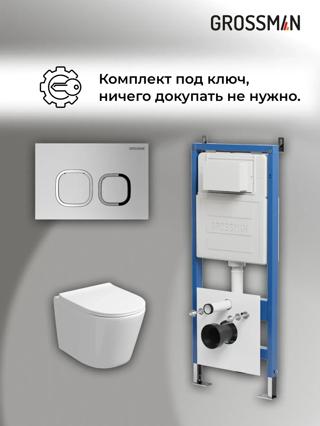 Унитаз Grossman Торнадо 97.4477SQ.02.110 с инсталляцией и хром матовой кнопкой смыва