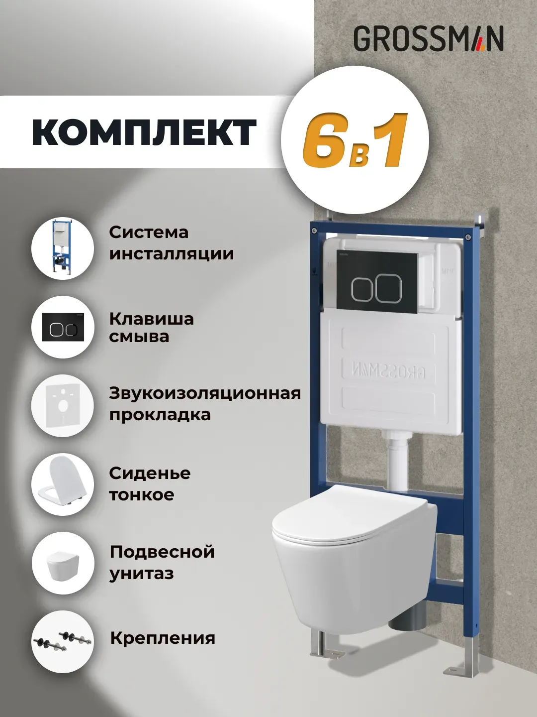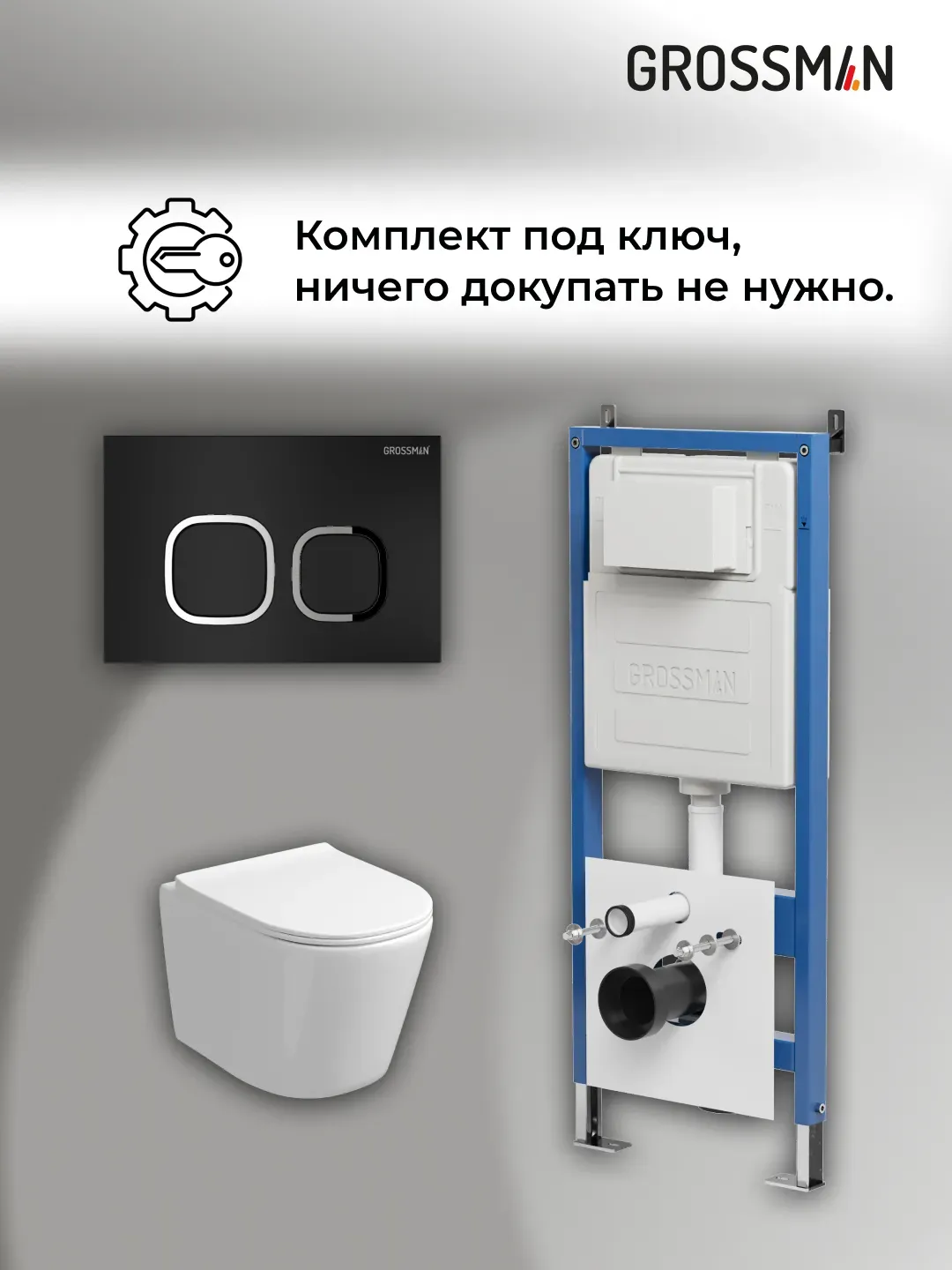 Унитаз Grossman Торнадо 97.4477SQ.02.210 с инсталляцией и черной матовой кнопкой смыва