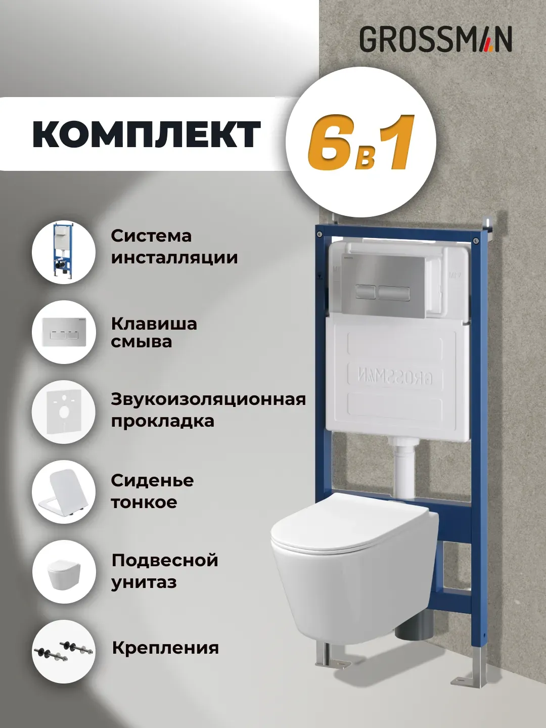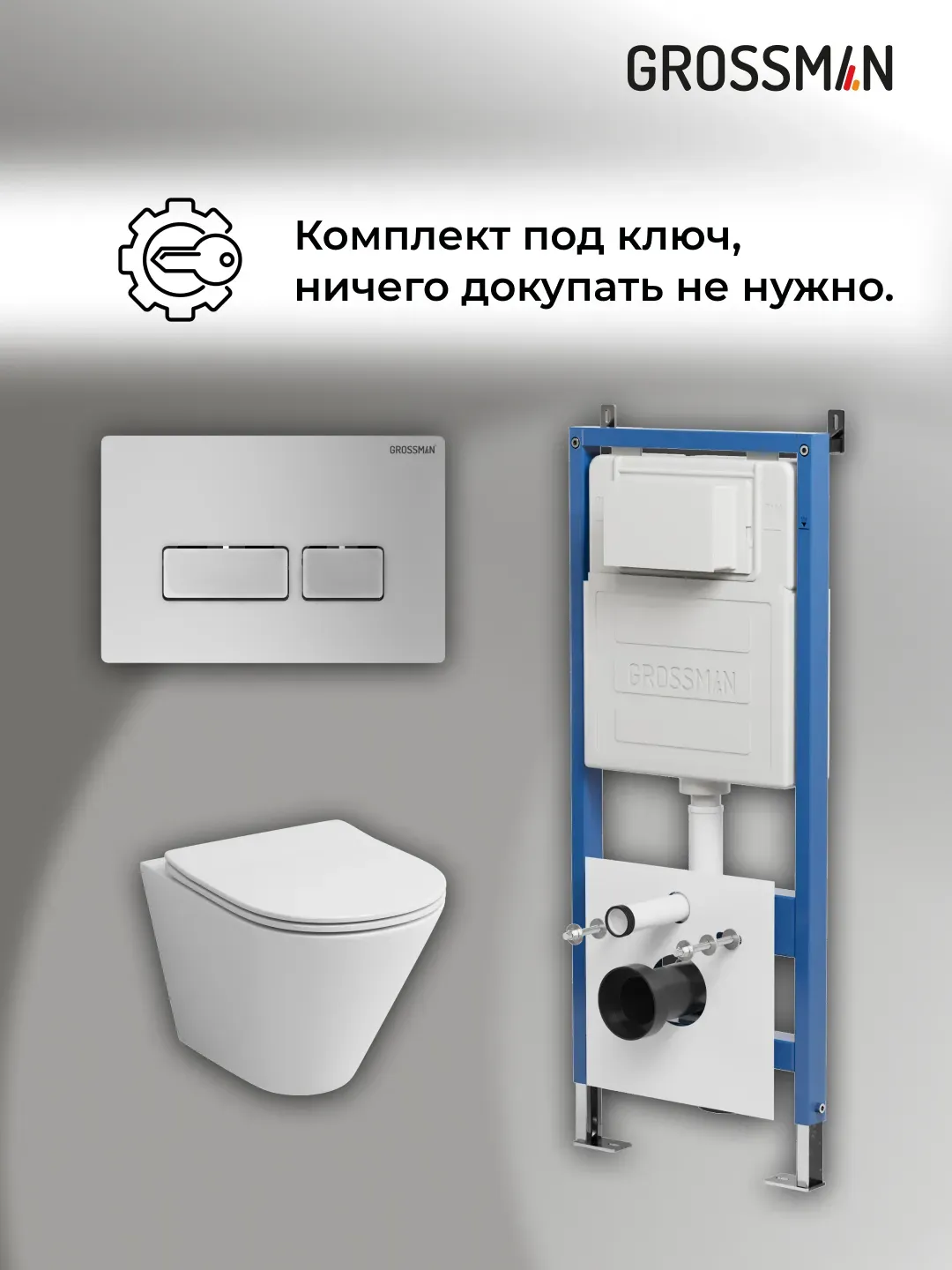 Унитаз Grossman Торнадо 97.4477SQ.03.110 с инсталляцией и хром матовой кнопкой смыва